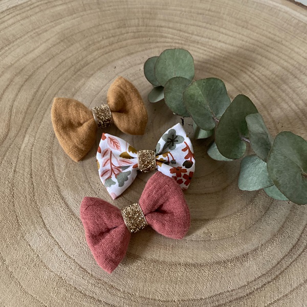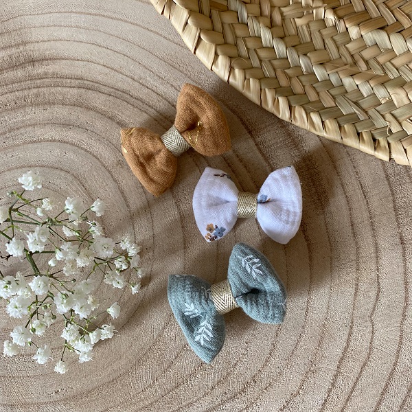 Pour un petit look très girly, les petites barrettes anti-glisse finiront parfaitement la tenue de bébé. A accrocher sur le coté ou pour dissimuler un élastique. Choisissez les tissus pour : ♡ 2 barrettes en double gaze finition dorée ou velours doré ♡ 1 barrette en tissu ou en double gaze finition dorée ou velours doré Voir les tissus en plus grand