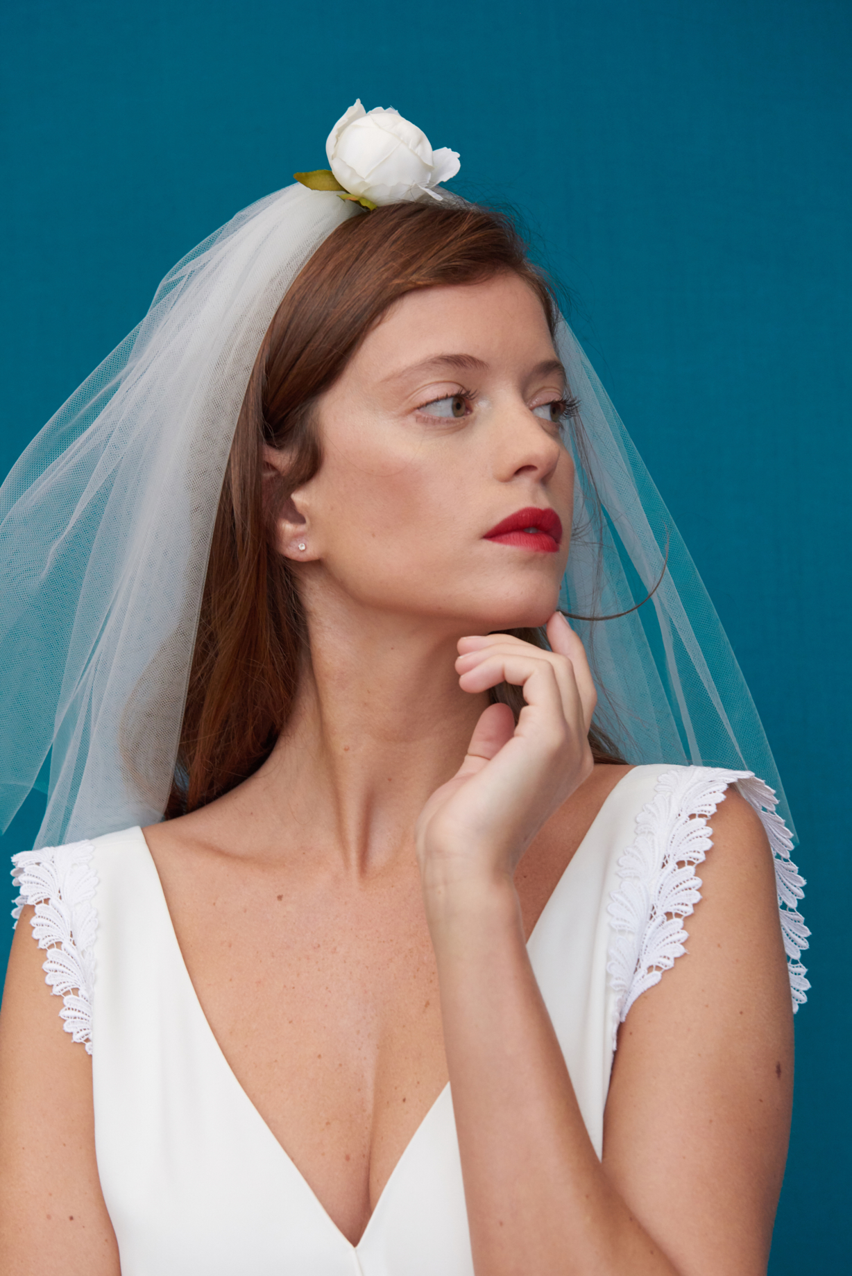 Combinaison pantalon en crêpe et broderie de Calais