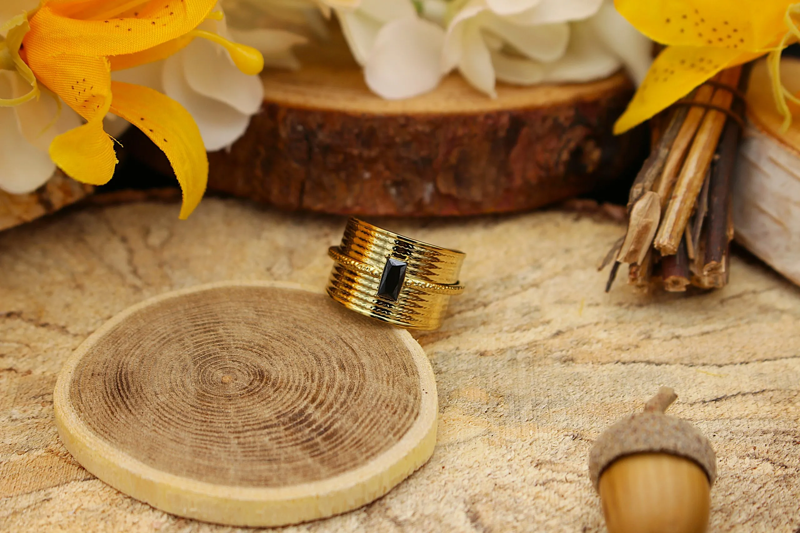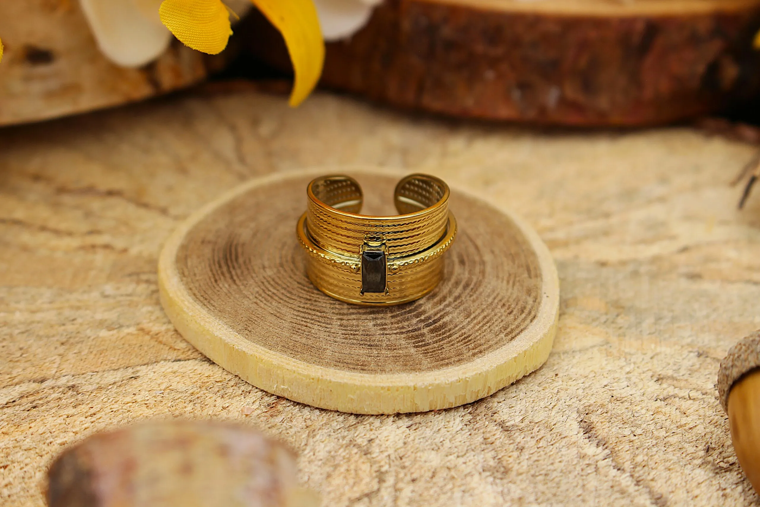 Bague Amara – Obsidienne Dorée