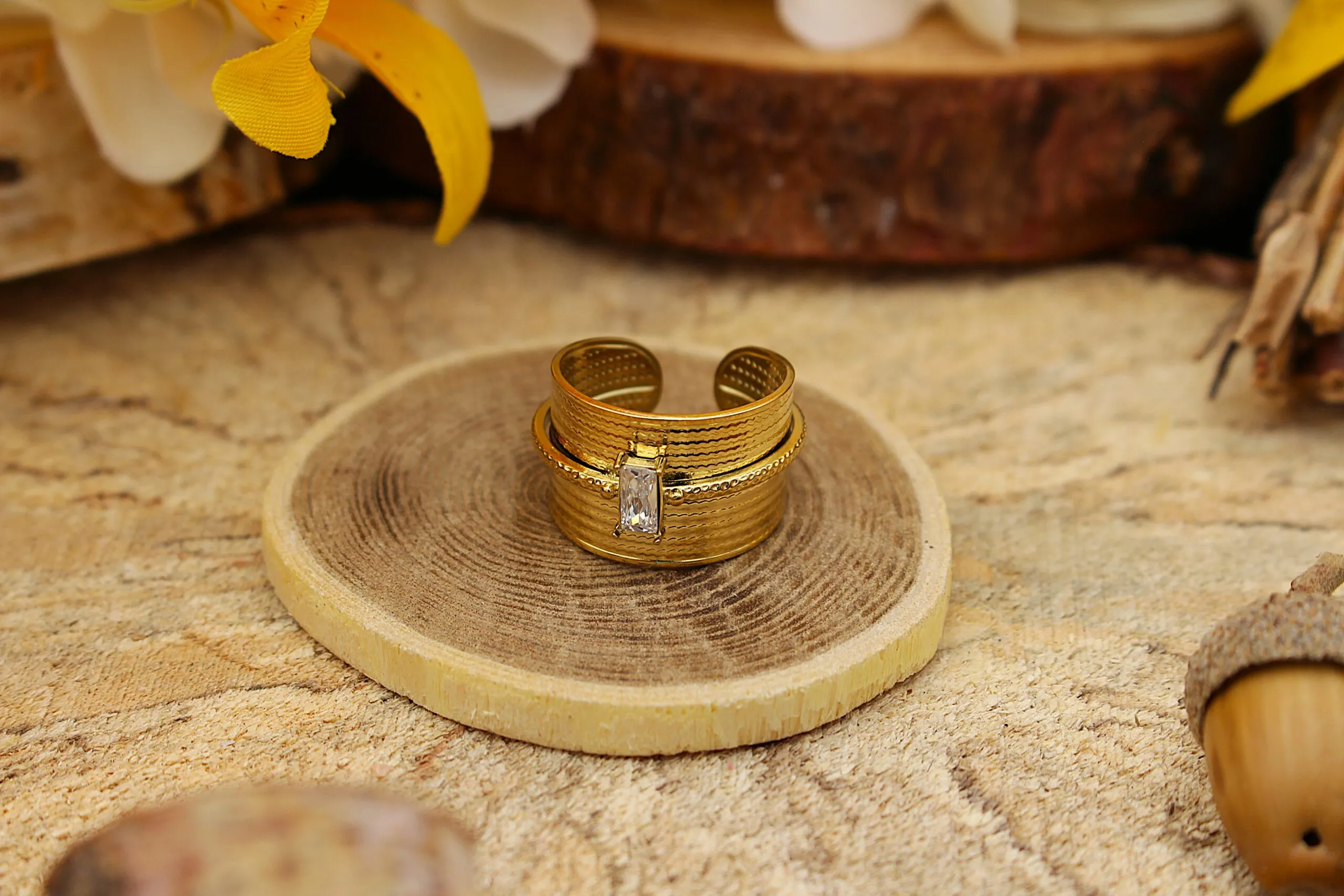 Bijoux Bague Large Strass en acier inoxydable 316.