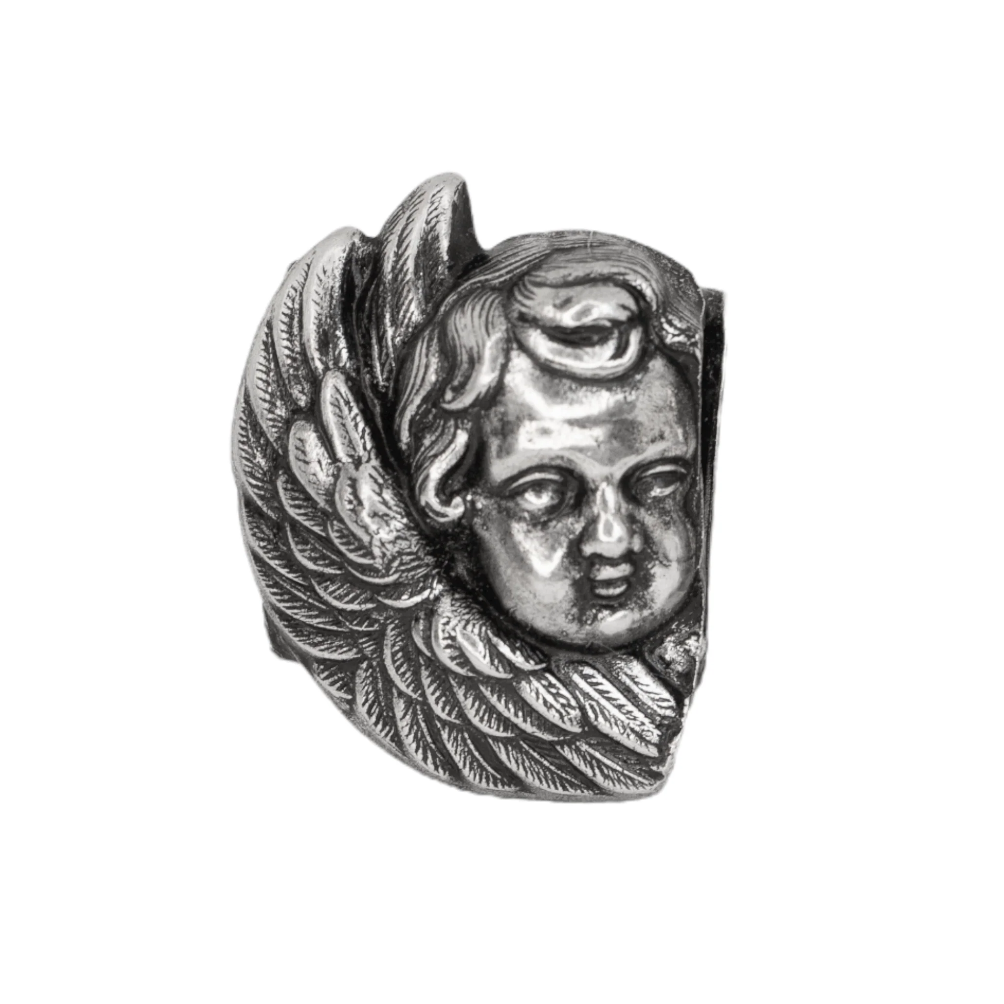 Bague Angel Chérubin Argentée – Bague en laiton argentée, patinée – Bague ajustable – Sans Nickel – Livré avec une pochette tissée main