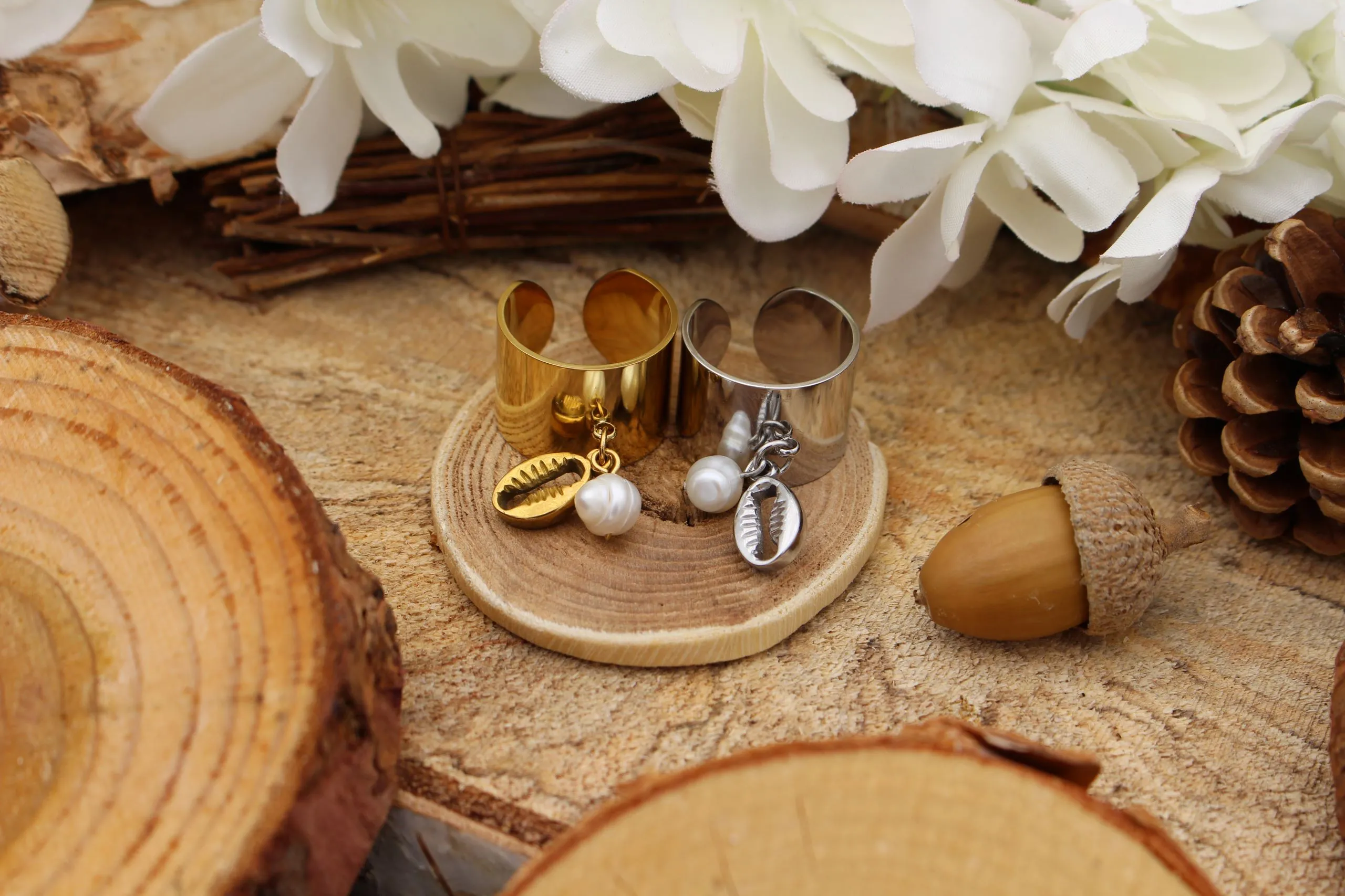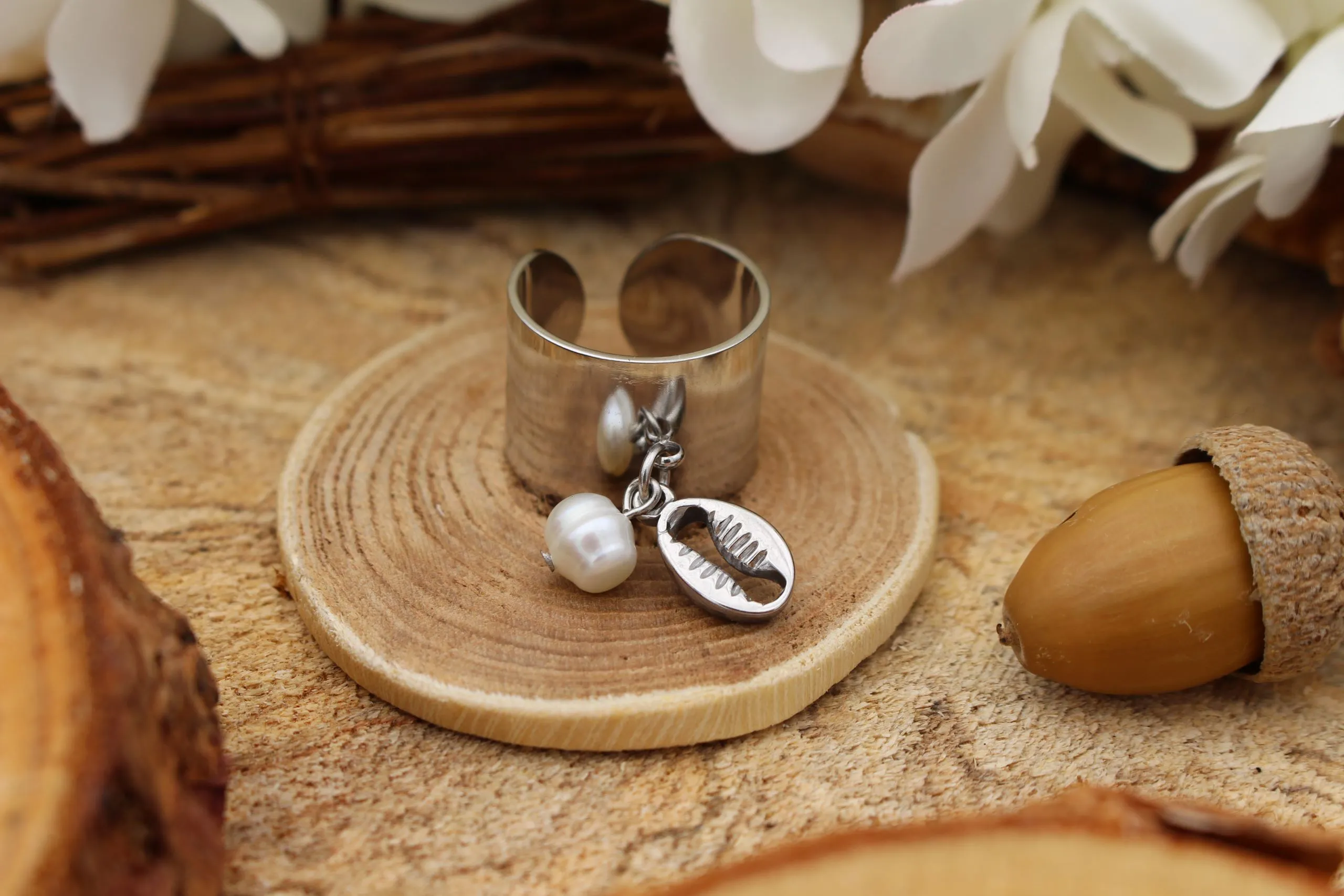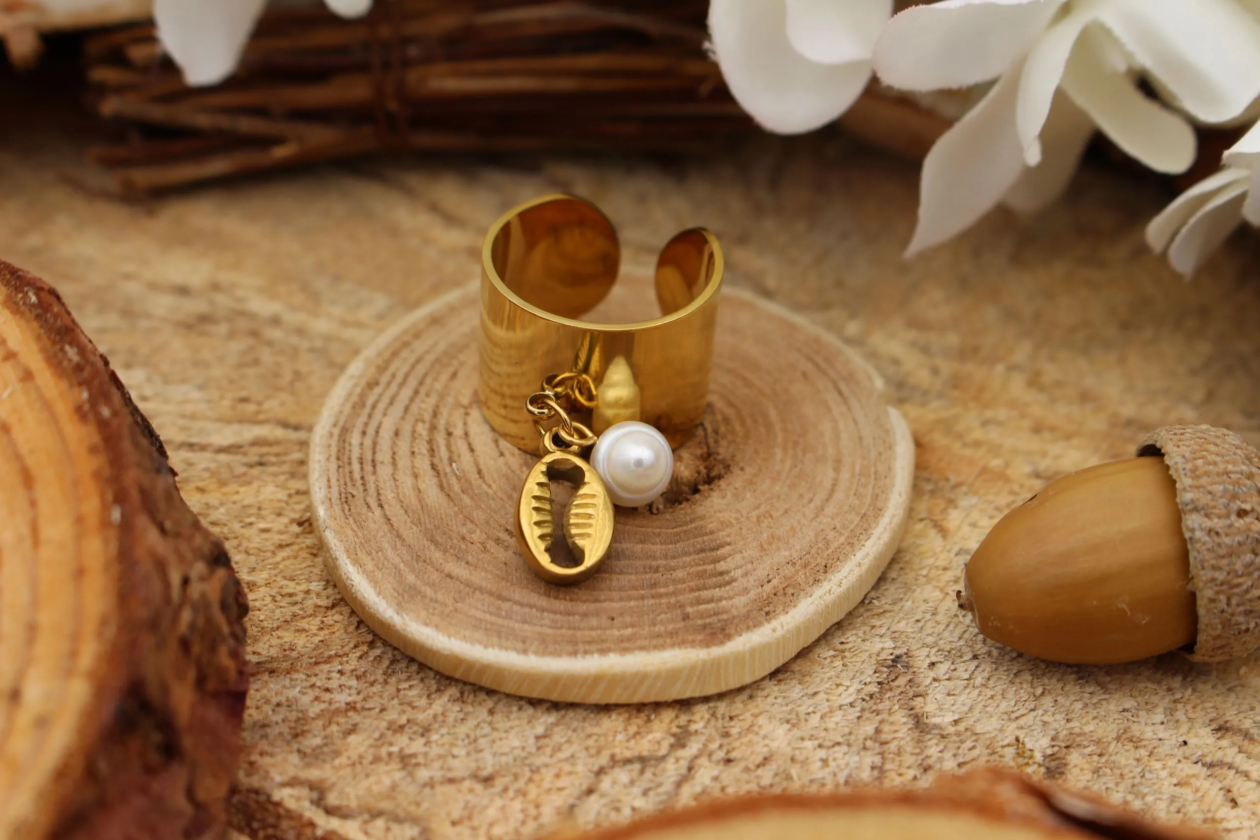 Bague Breloque Coquillage-Perle est une bague réglable large ouverte avec une breloque en forme de coquillage de type Cori accompagné d’une perle de culture synthétique. Elle fera un cadeau idéal pour un anniversaire, pour noël et pour la saint Valentin par exemple ! Directement emballé dans son pochon en toile d’origine et donc prêt à offrir si vous le souhaitez. Vous pouvez également choisir une boîte cadeau pour marquer le coup en allant en choisir une dans notre rubrique Boîte Cadeau. Même si vous décidez de prendre une boîte cadeau, le pochon en toile d’origine sera automatiquement fournit avec !