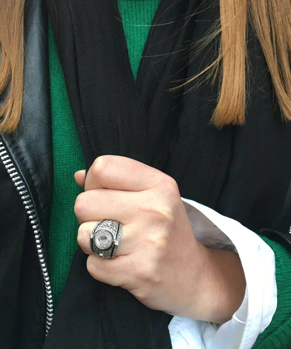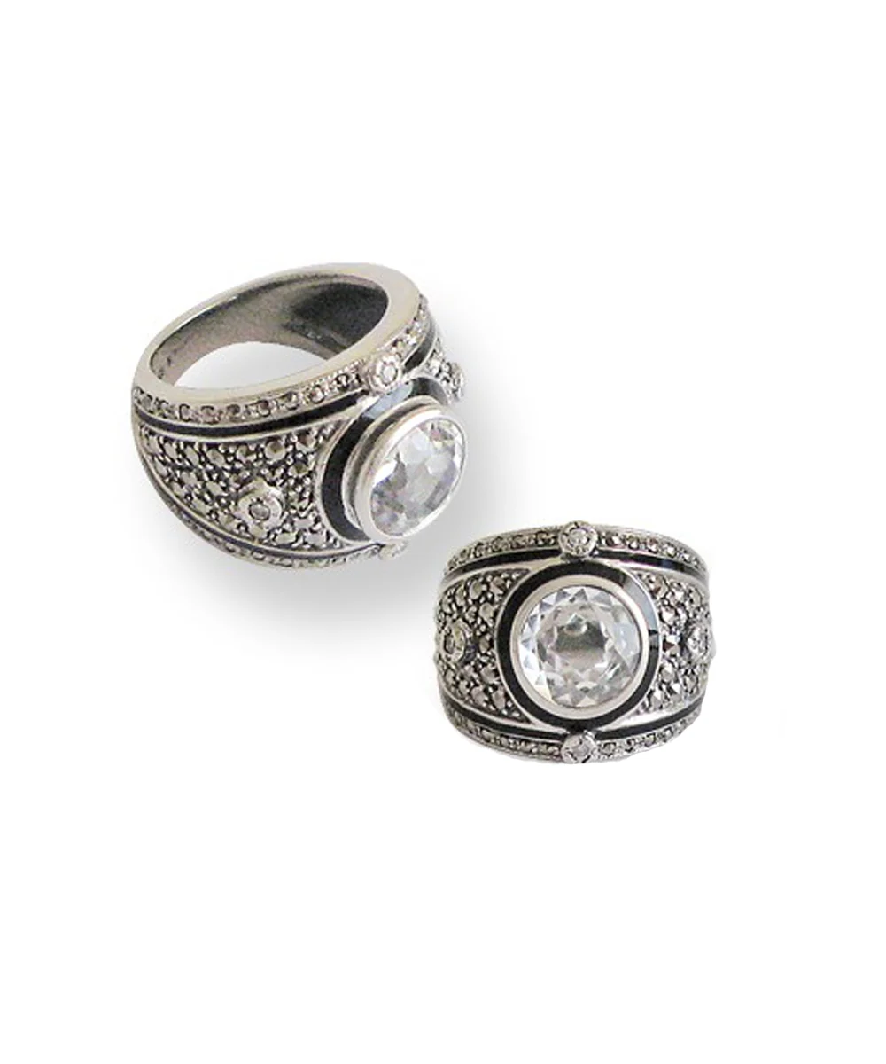 Bague argent, oxyde de zirconium, marcassites de style art deco