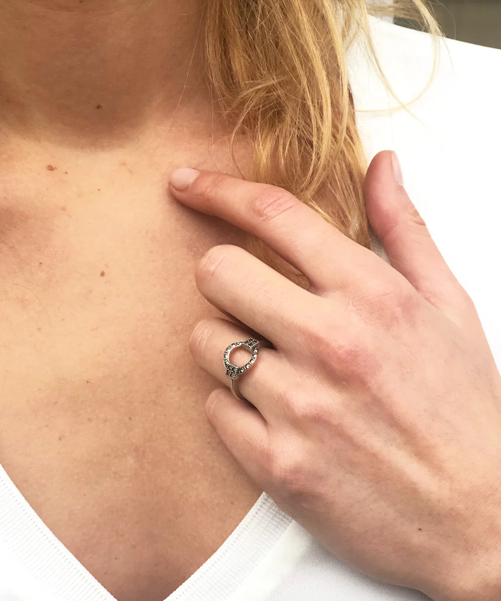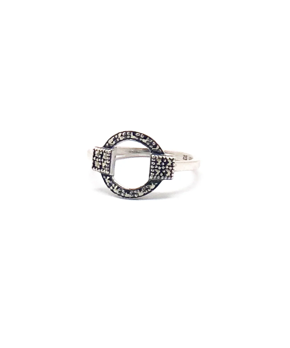 La Marcassite est une pierre minérale, provenant du cristal de pyrite, utilisé pour valoriser une autre pierre, notamment sur des montures en argent. Les marcassites sont taillées de forme ronde ou carrée et serties pour former un pavage qui resplendit comme des petits diamants.