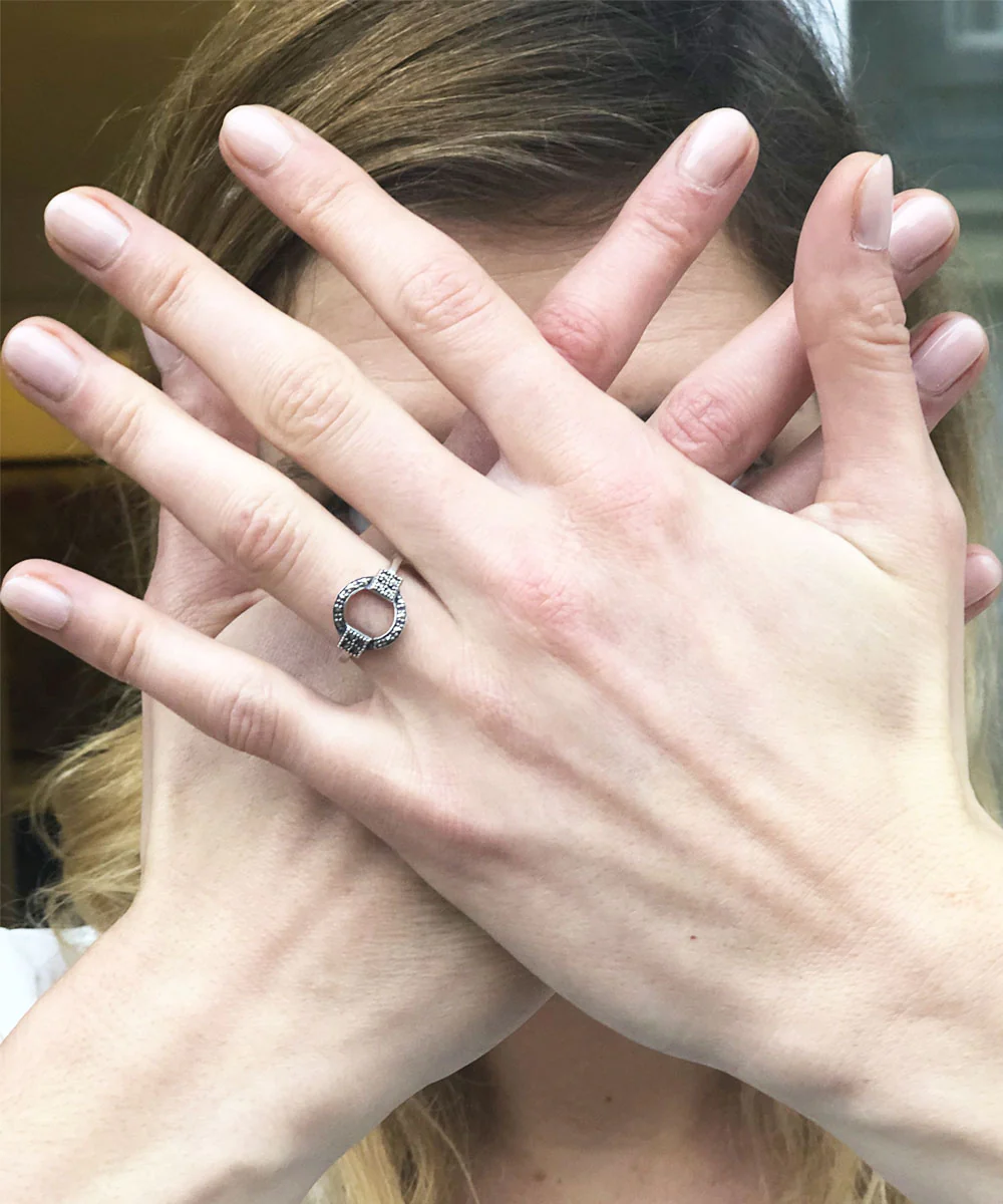 Anneau croisé en argent, marcassite et vermeil de style art déco