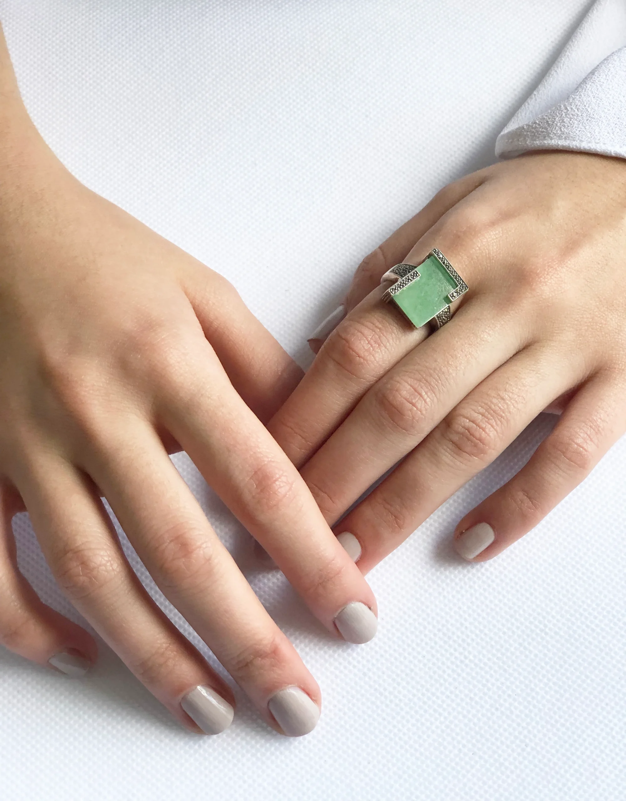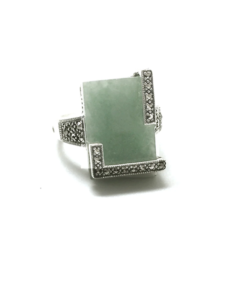 Bague art déco en jade, argent et marcassite