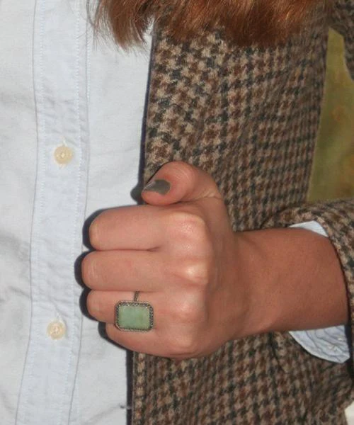 Bague agate verte art déco en argent 925 et marcassites