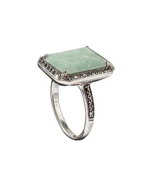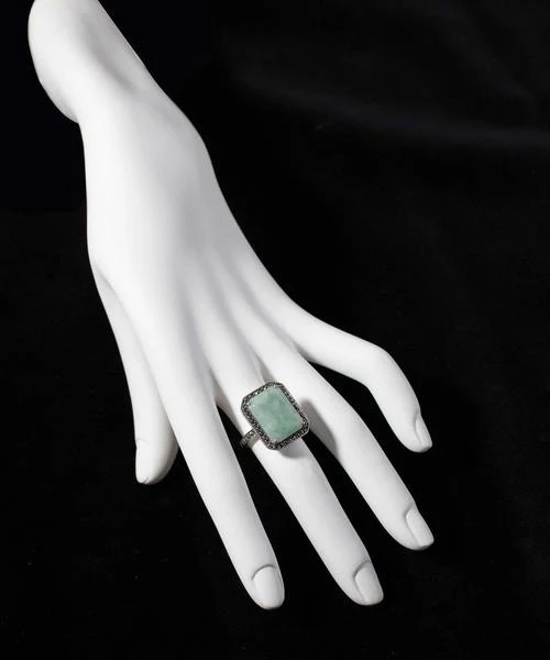 Bague art déco en jade, marcassite et argent – Métron