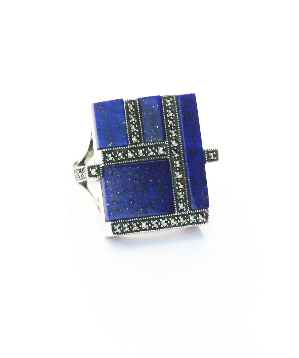 Bague art déco lapis-lazuli, marcassite et argent