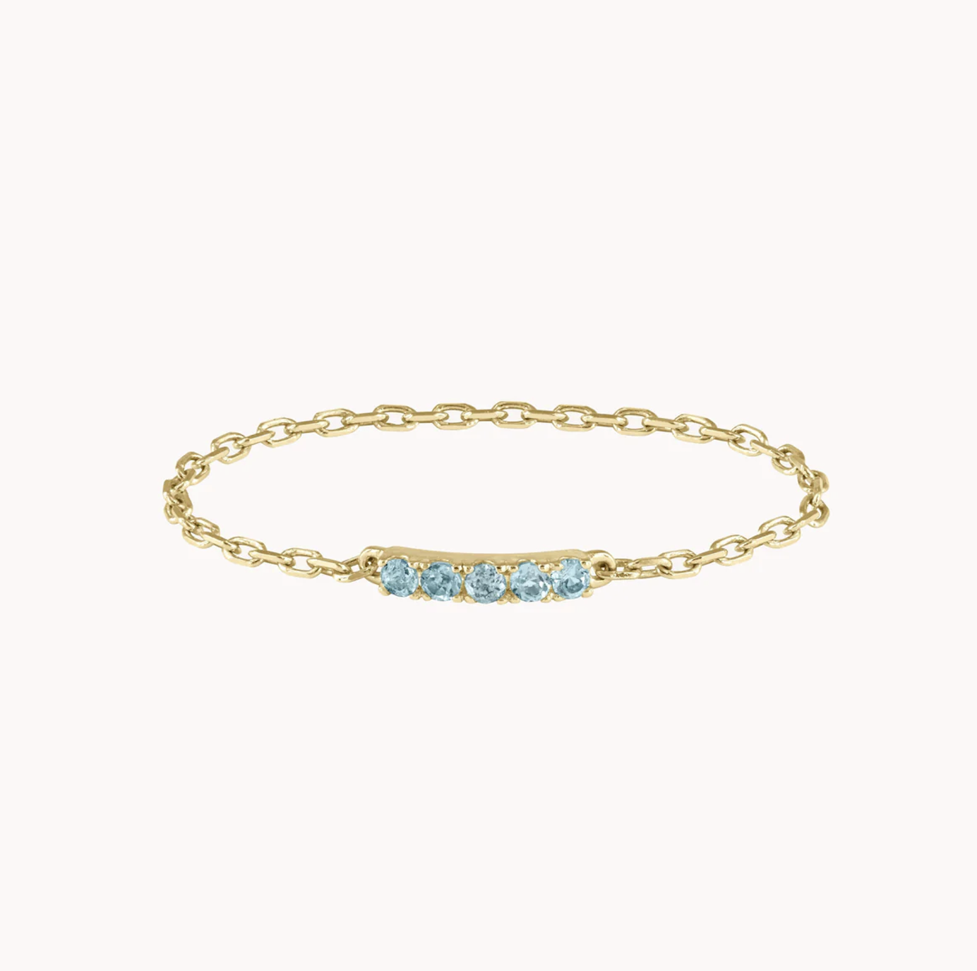 Bague chaine or jaune 18 carats et topaze bleue – Iris