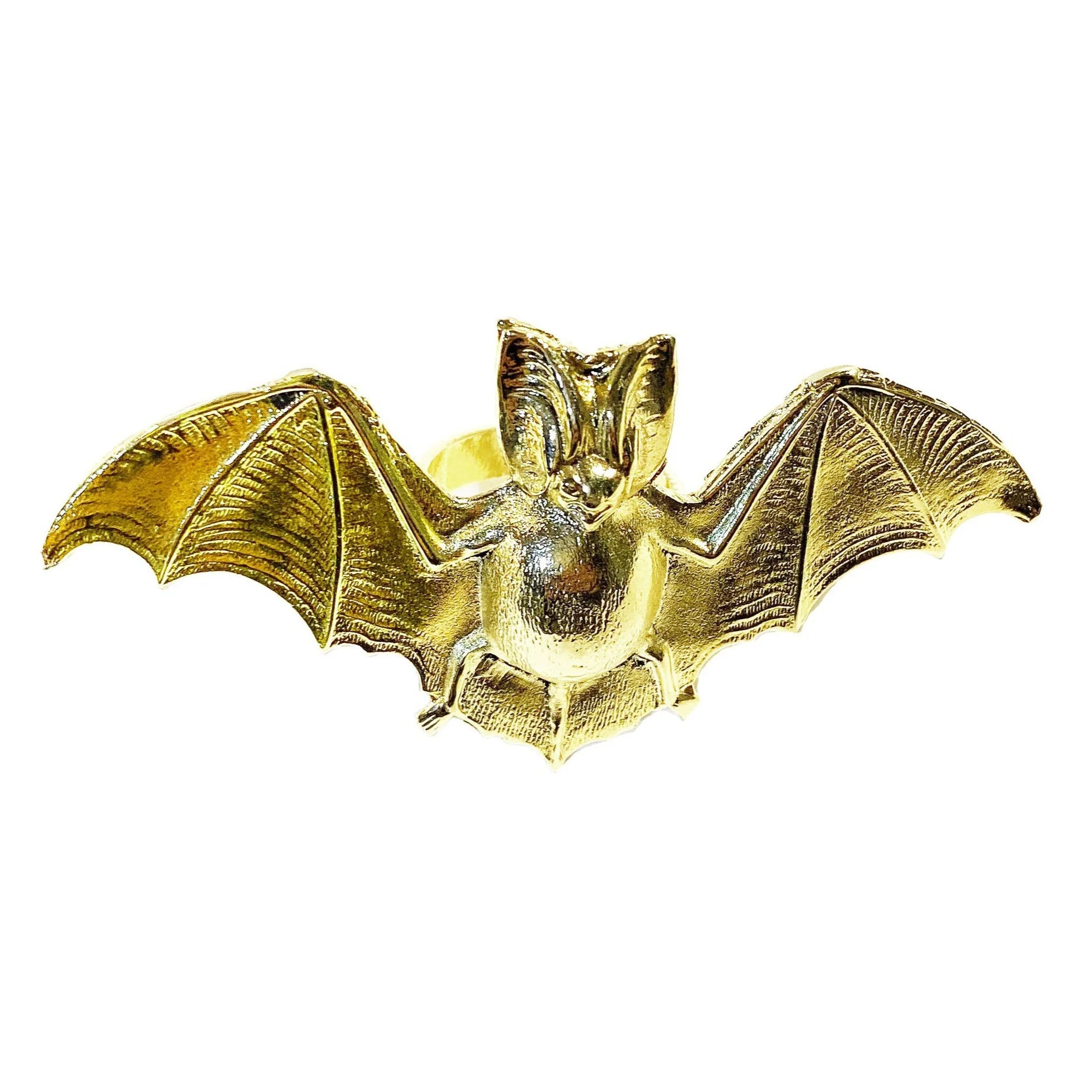 Bague Chauve-Souris Dorée – Bague dorée or fin, patinée – Bague ajustable – Sans Nickel – Livré avec une pochette tissée main