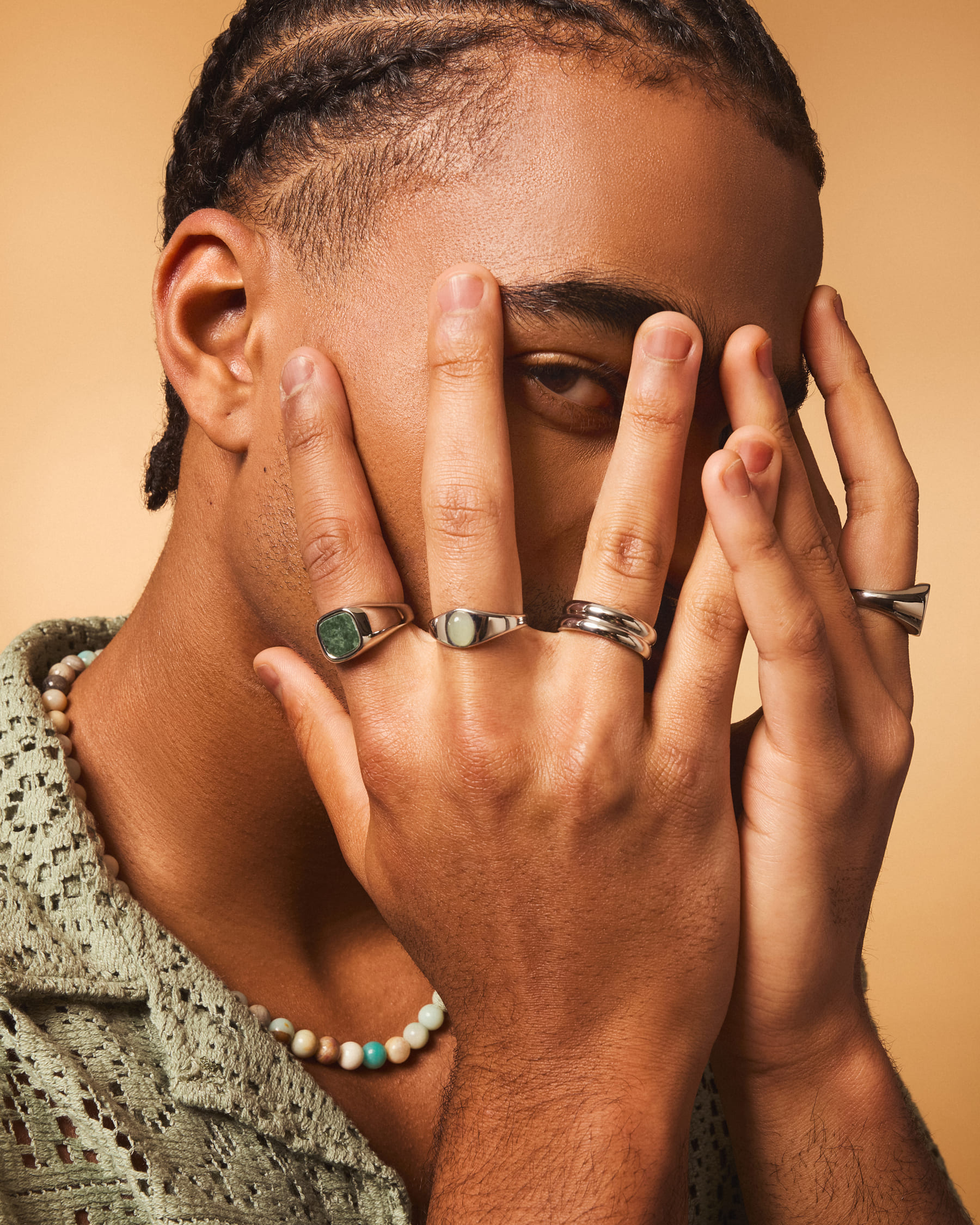 *DERNIÈRE CHANCE La bague pour hommes Clément est une bague chevalière ornée de marbre vert. Son look ne passera pas inaperçu et elle ajoutera une touche moderne à vos styles. Ce bijou est fabriqué en acier inoxydable 316L. Le marbre vert sur le dessus de chaque bague est unique. Nous ne pouvons garantir le motif de la pierre.