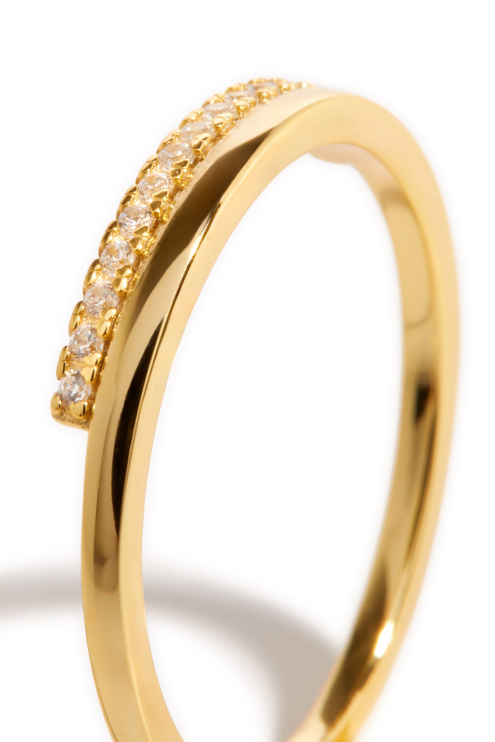 La Diana est une bague pour femmes qui donne un effet double. Elle est composée d’un jonc complet et d’un demi jonc scintillant. Elle est fabriquée en or vermeil, composée à la base en argent sterling 925, et plaquée en or 14k jaune ou blanc.