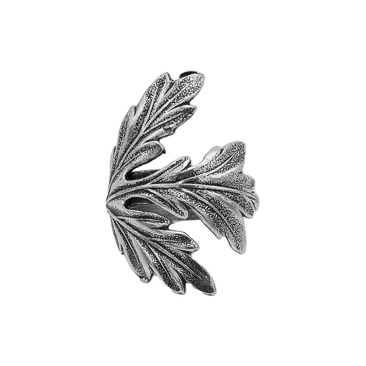 Bague Ella Argentée – Bague feuille d’érable argentée, patinée – Bague ajustable – Sans Nickel – Livré avec une pochette tissée main