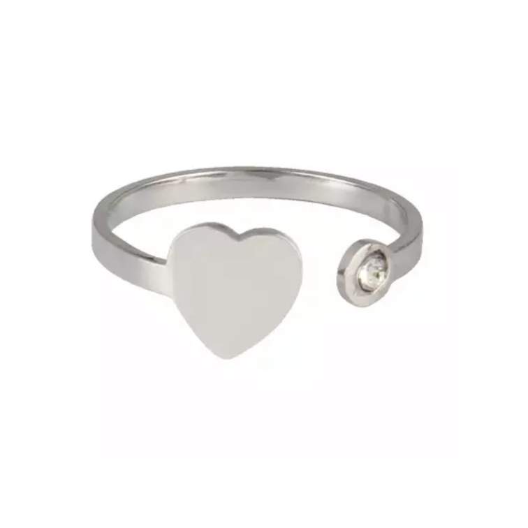 Bague fine coeur. Bague ouverte acier argenté. Composition : acier chirurgical et inoxydable Taille ajustable. Emballage cadeau offert!