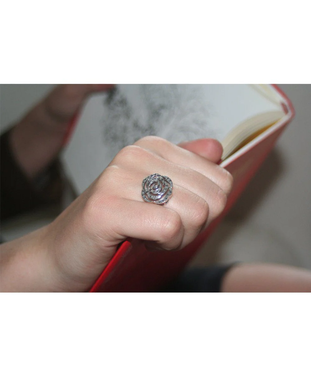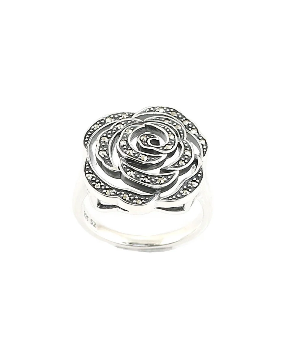 Bague fleur de style art déco en forme de rose en argent 925 et marcassites.