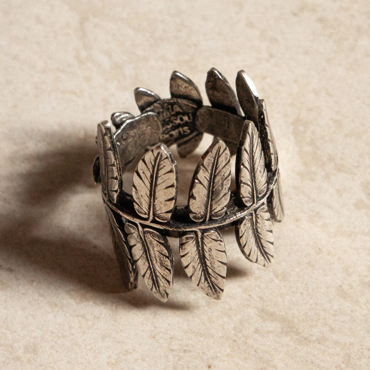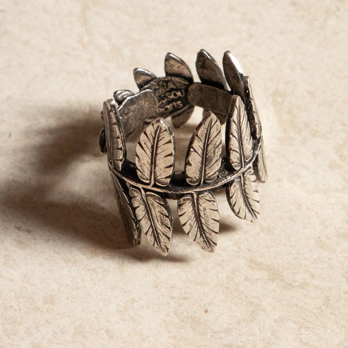 – Bague en laiton argentée et patinée