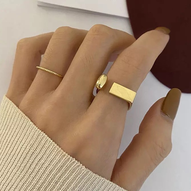 Bague géométrique plaqué or. Bague argent fantaisie. Bague ouverte en argent 925 plaqué or. Bague réglable. Emballage cadeau offert!