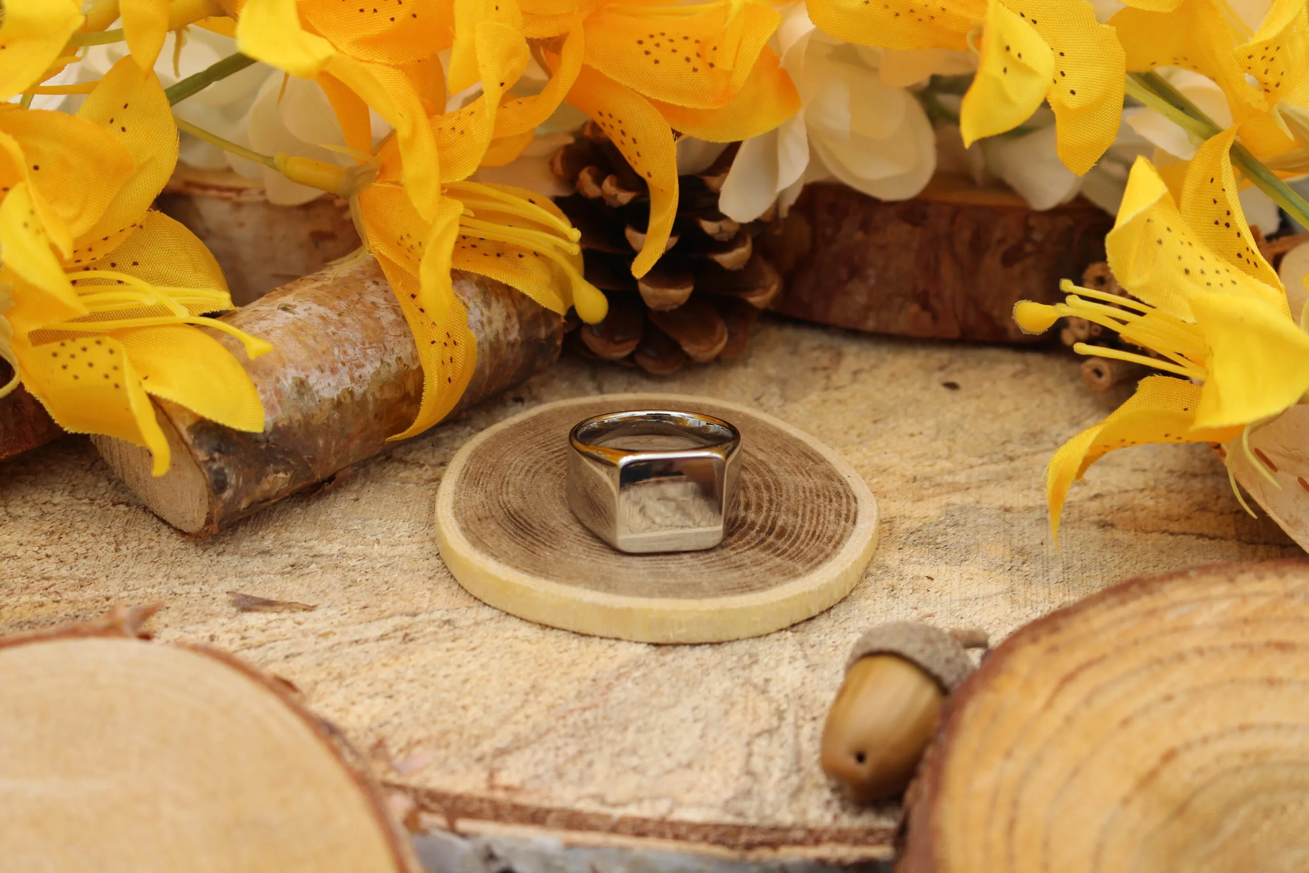 Bijoux gravure chevalière carré  en acier inoxydable 316.