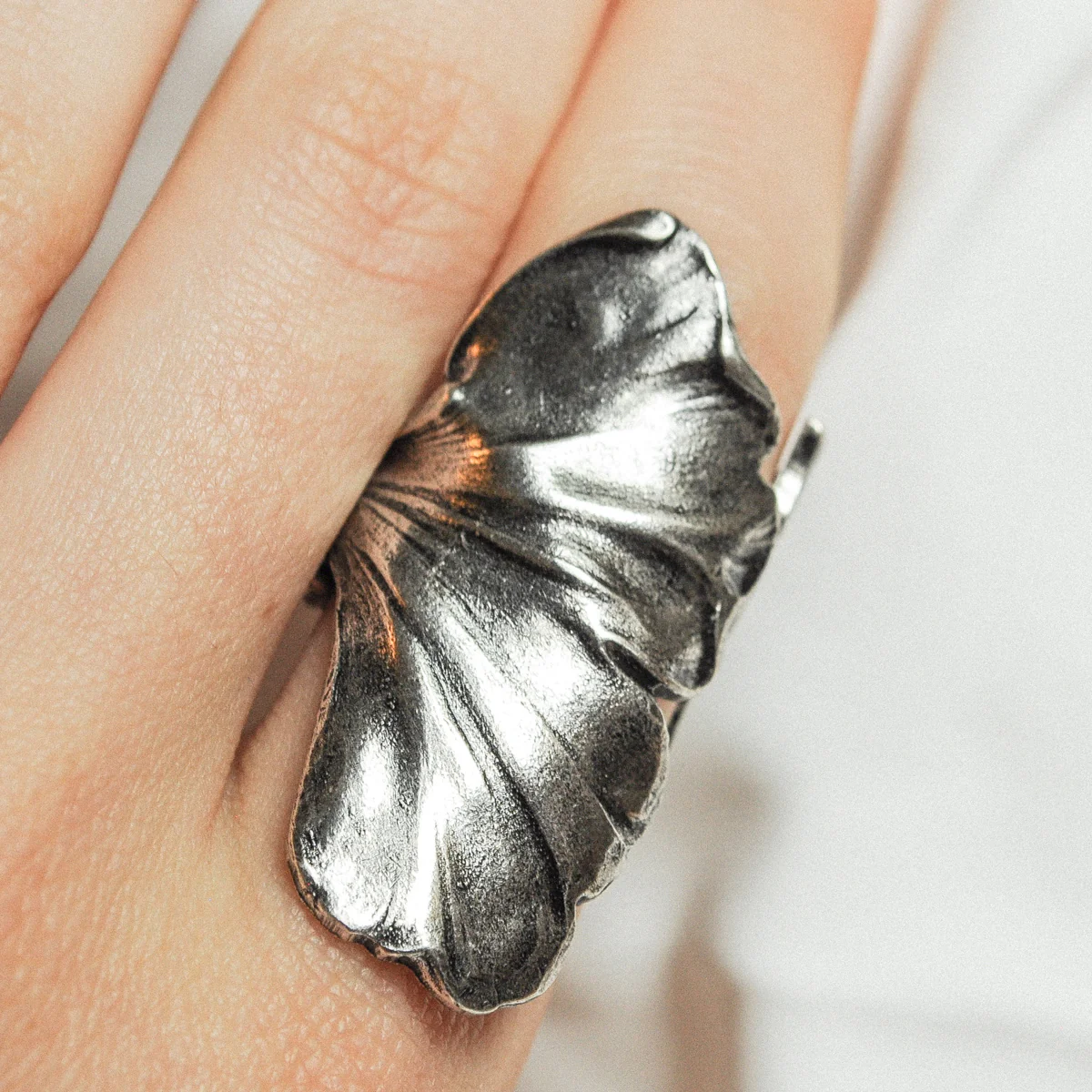Un éclat de nature éternelle enroulé autour de votre doigt. La bague ginkgo Maria fera sensation ! – Bague feuille de Ginkgo en laiton argentée, patinée – Bague ajustable – Sans Nickel – Livré avec une pochette tissée main
