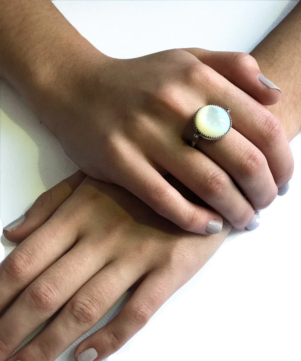 Bague nacre ronde art déco en argent 925 et marcassites