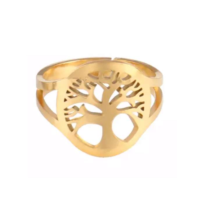 Bague ouverte Plaqué Or. Bague ouverte arbre de vie. Composition : acier plaqué or. Taille ajustable. Bague tendance 2022. Emballage cadeau offert!