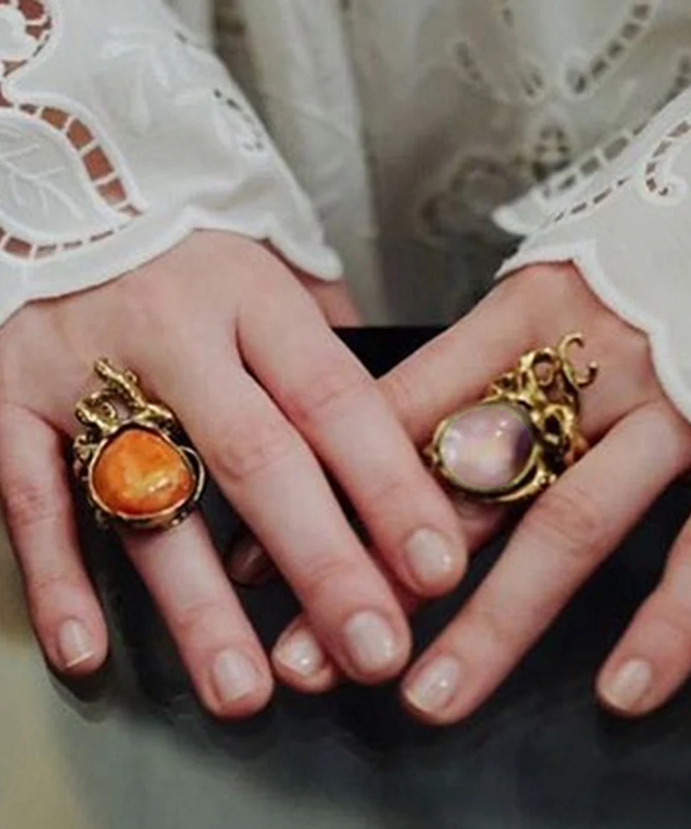 Bague Agate blanche pieuvre en bronze – Bernard Delettrez