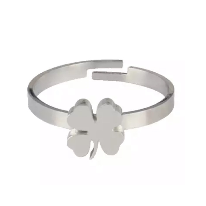 Bague porte-bonheur femme. Bague ouverte trèfle acier. Composition : acier chirurgical et inoxydable Taille ajustable. Emballage cadeau offert!