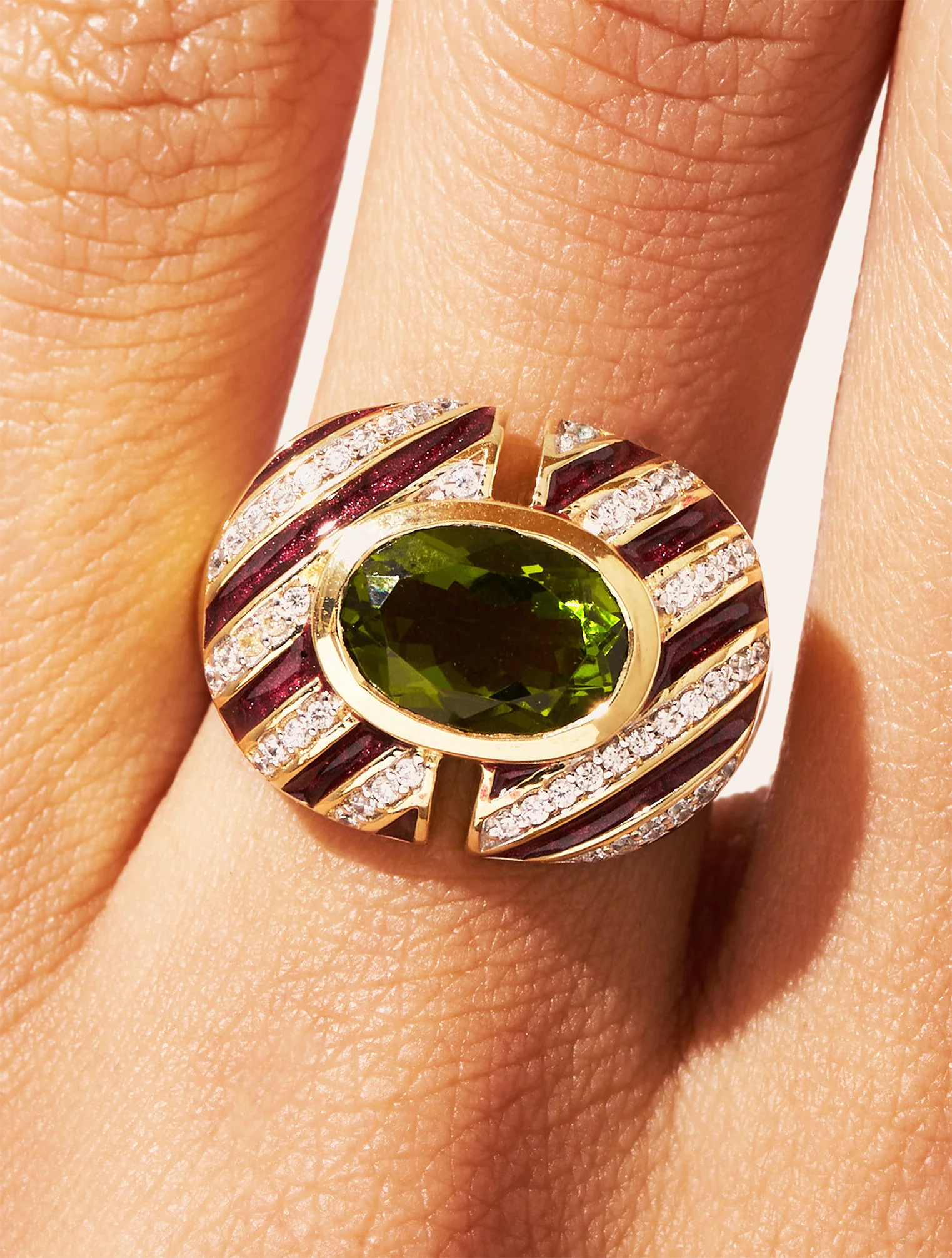 Bague Règne animal – Zèbre – Quartz coloré vert & émail bordeaux