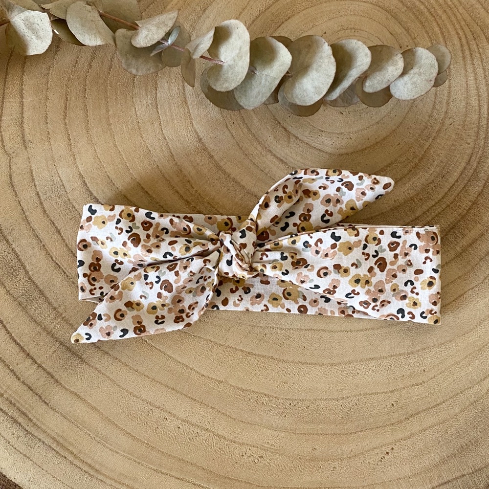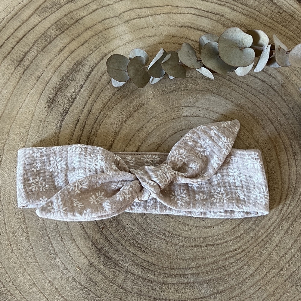 Accessoire indispensable pour bébé fille Le petit bandeau cheveux qui habillera ses jolies tenues, il est à nouer sur le dessus de la tête, et donc ajustable. Taille 0-24 mois En coton bio ou en double gaze de coton, choisissez votre tissu. Voir les tissus en plus grand