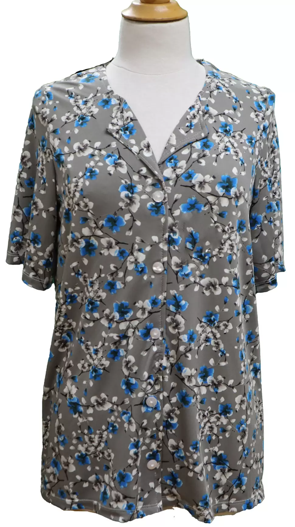 Blouse adaptée 1-1463 -Gris/Bleu-