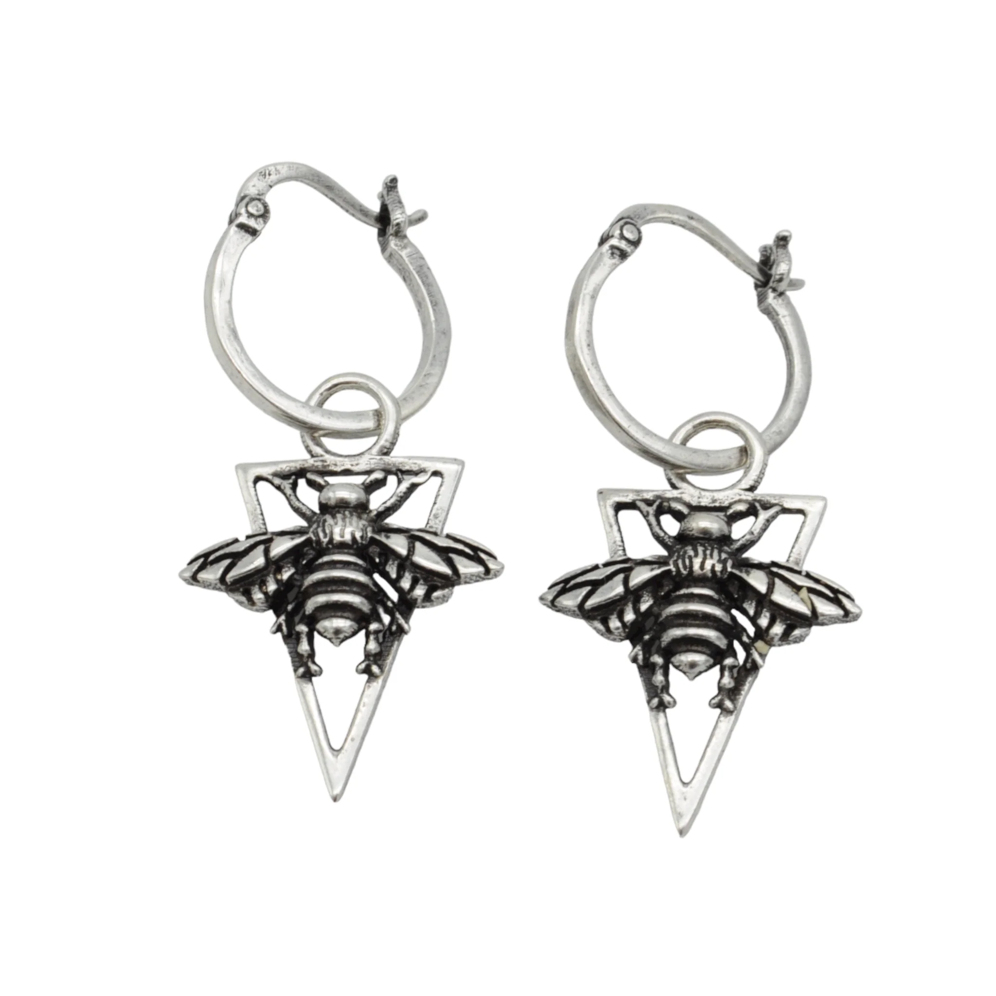 Découvrez notre nouvelle collection de boucles d’oreilles aux puces avec Abeille pendante argentées. – Boucles d’oreilles en laiton argenté, patinées – Sans Nickel – Livré avec une pochette tissée principale
