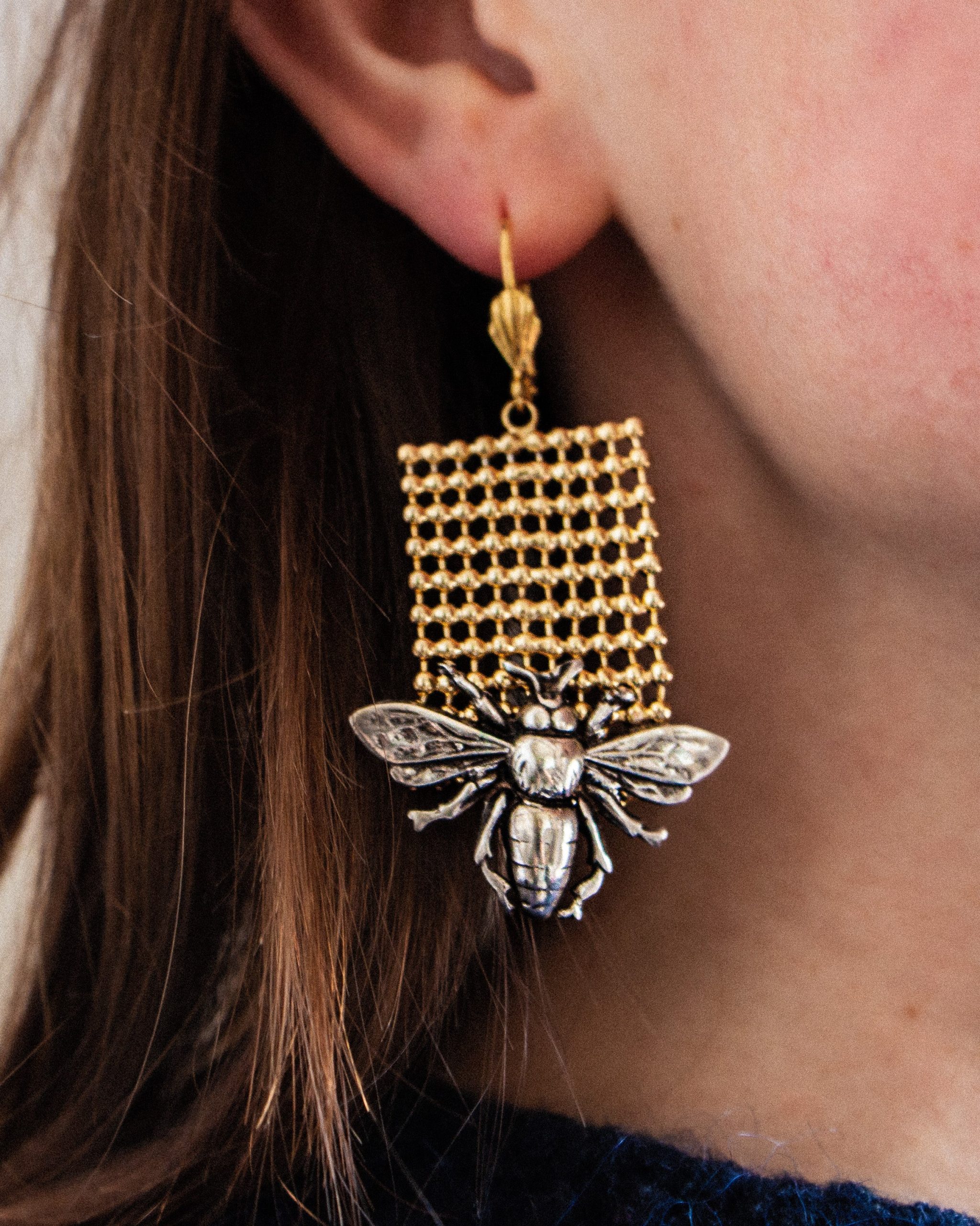 Boucles d’Oreilles Abeilles Pendantes Dorées