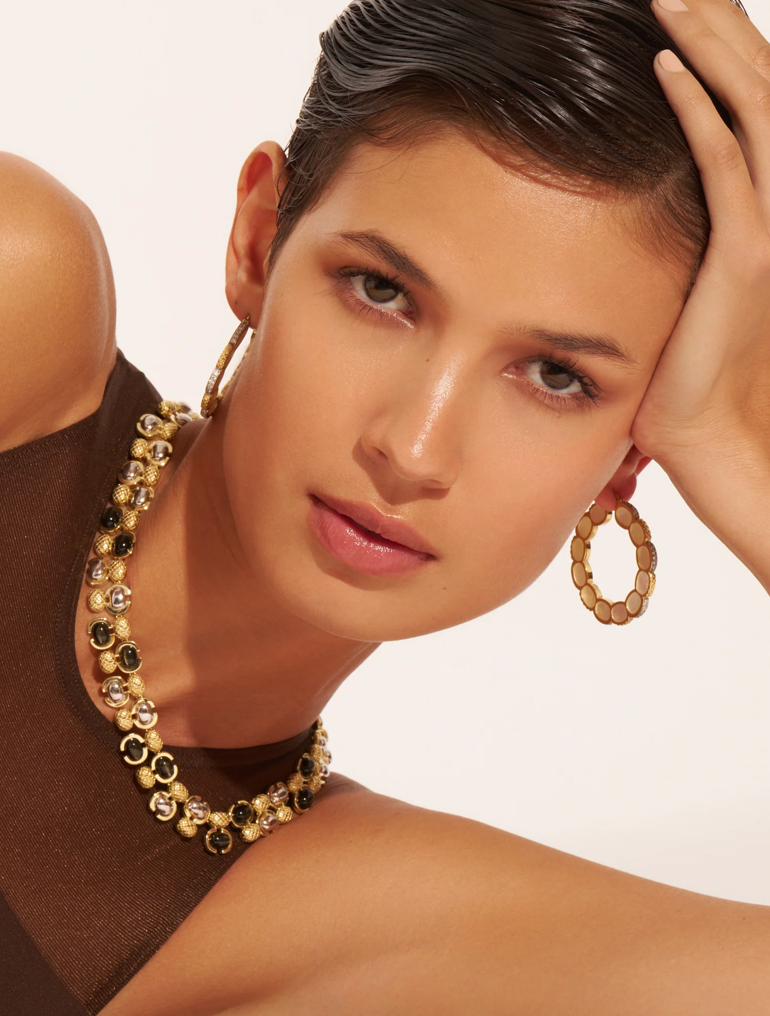 Sublime création, subtile fabrication : la paire de boucles d’oreilles Amara en Nacre laisse sans voix. Si le minutieux cache-cache de zircons dorés et argentés sur les côtés est fabuleux, la présence de fines pierres incrustées dans chaque forme ovale, rappelant celle de beaux pétales, est d’une grande élégance. Sans conteste, l’allure intemporelle et originale […]