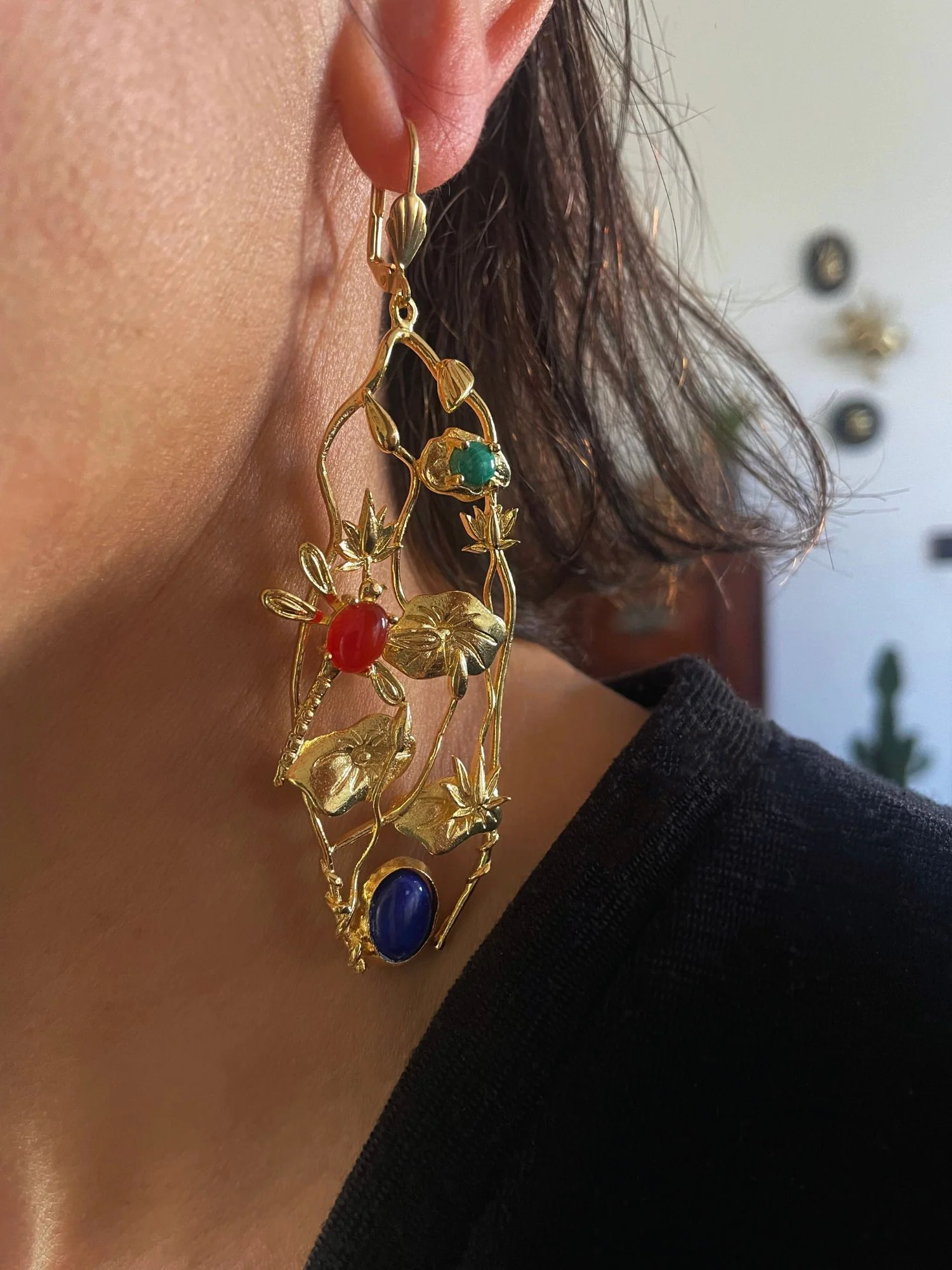 Boucles d’oreilles feuillage Giverny Lapis lazuli et pierres fines colorées