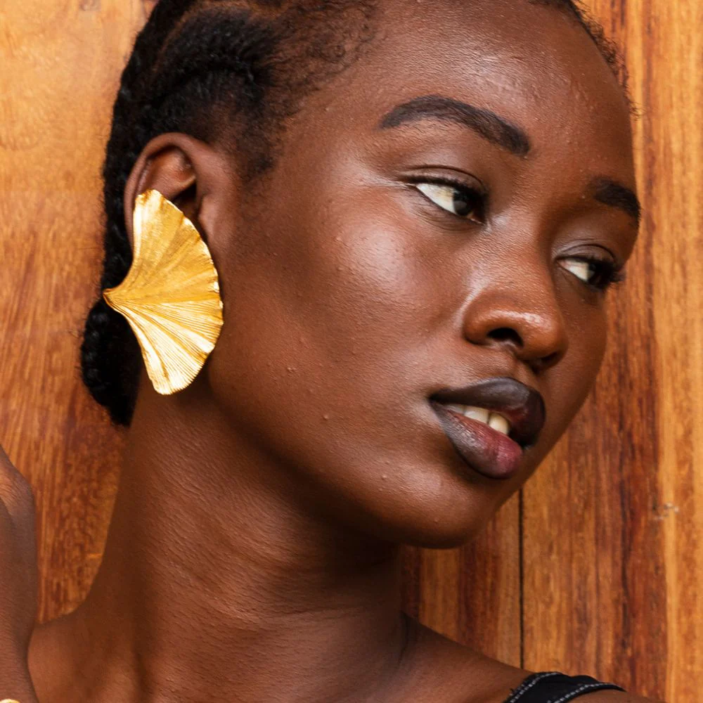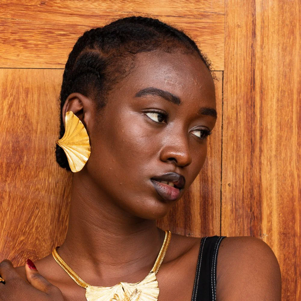 Grandes boucles d’oreille Feuille de Ginkgo Doré