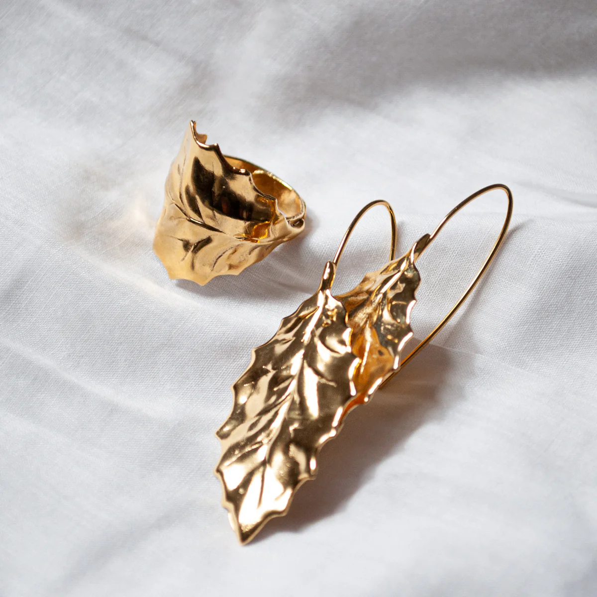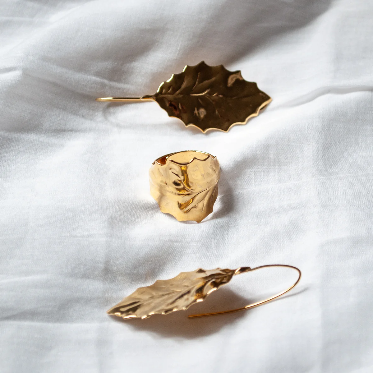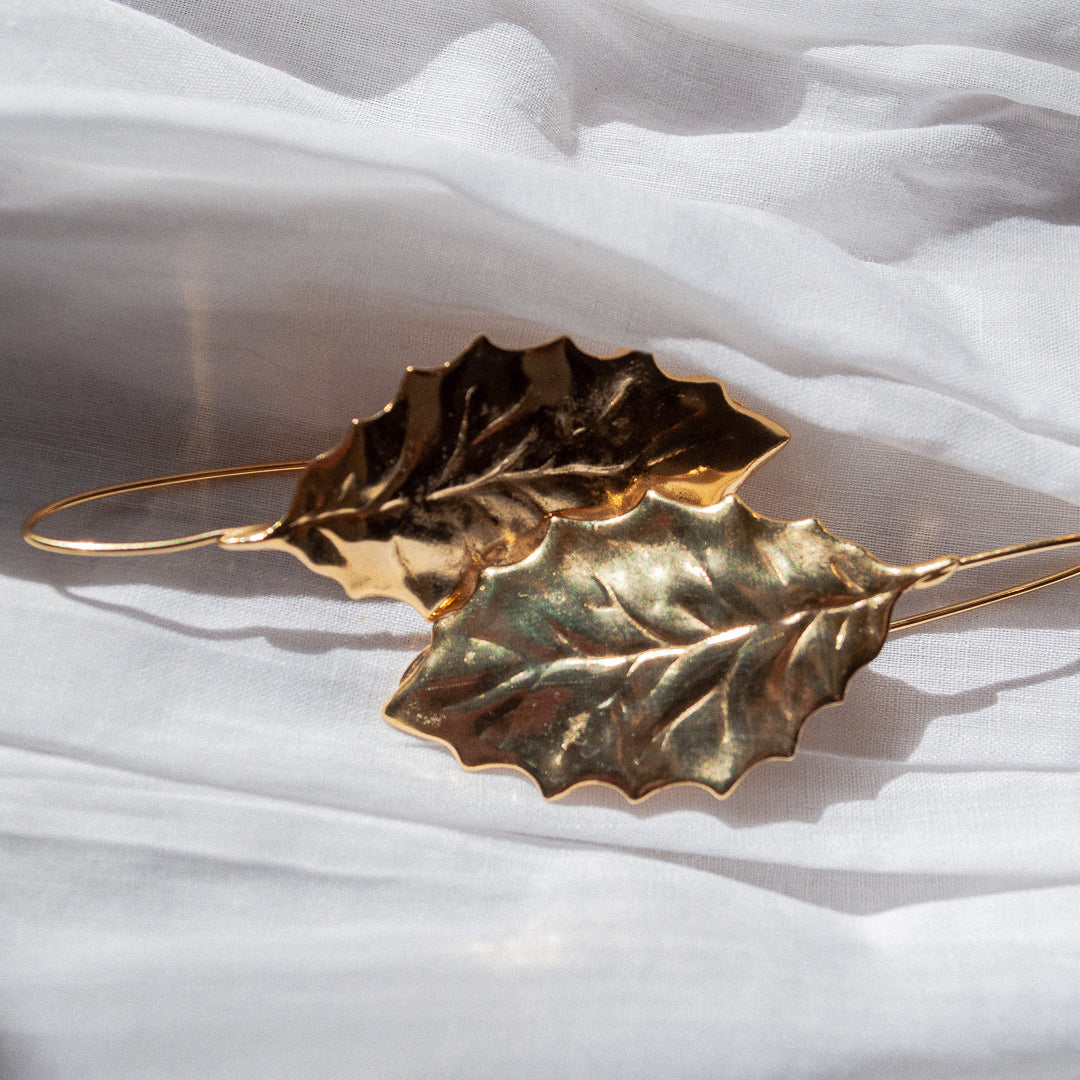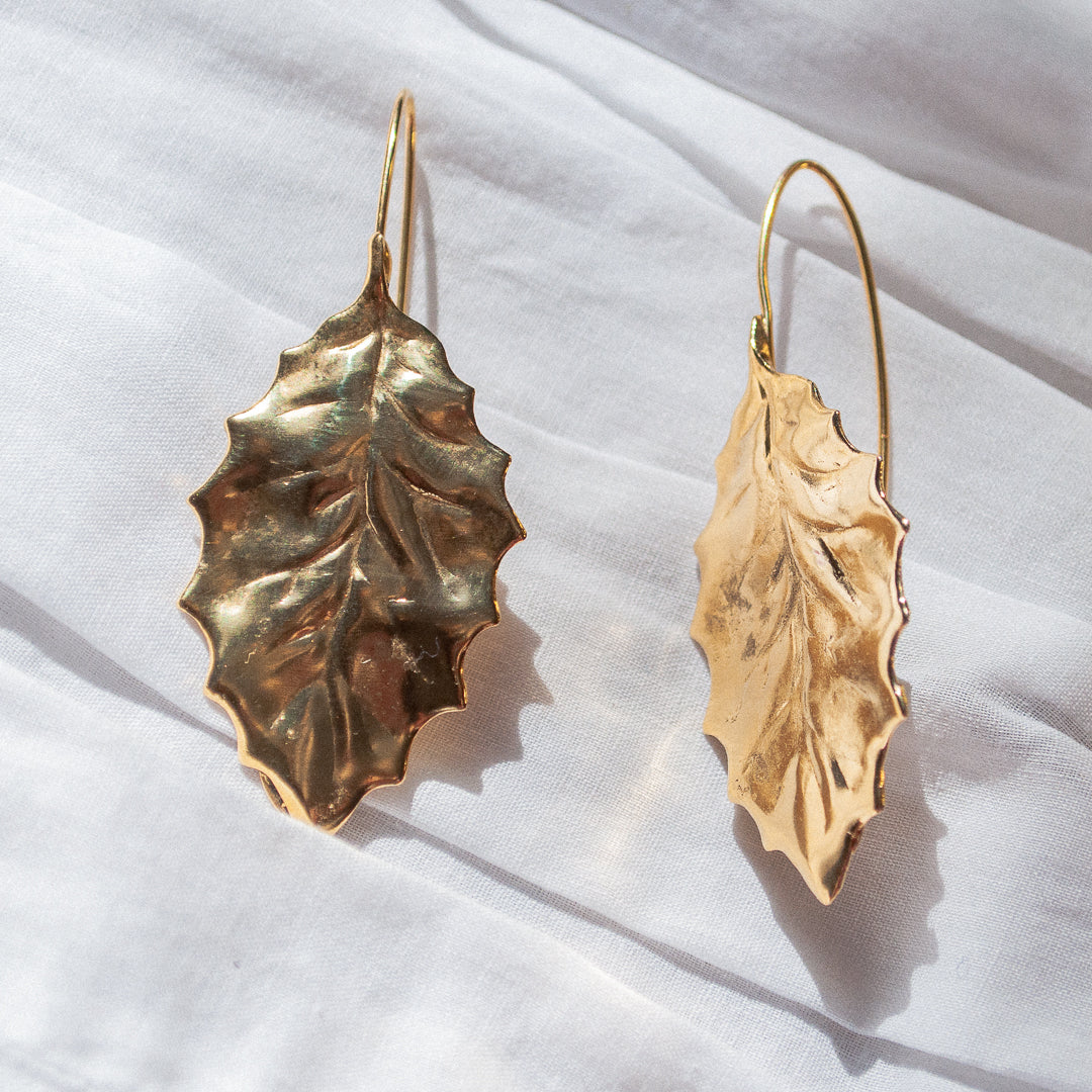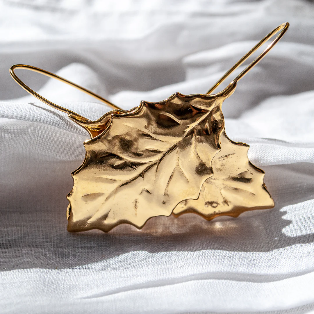 Boucles d’Oreilles Flora Dorées – Boucles d’oreilles dorées or fin, patinées – Inoxydable – Sans Nickel – Livré avec une pochette tissée main