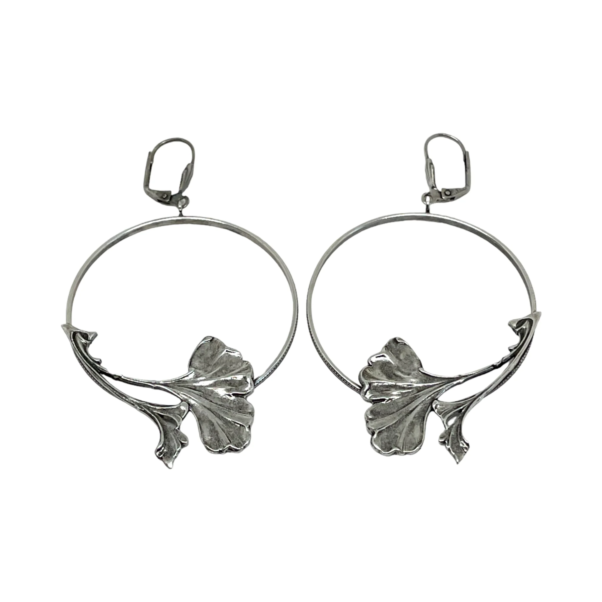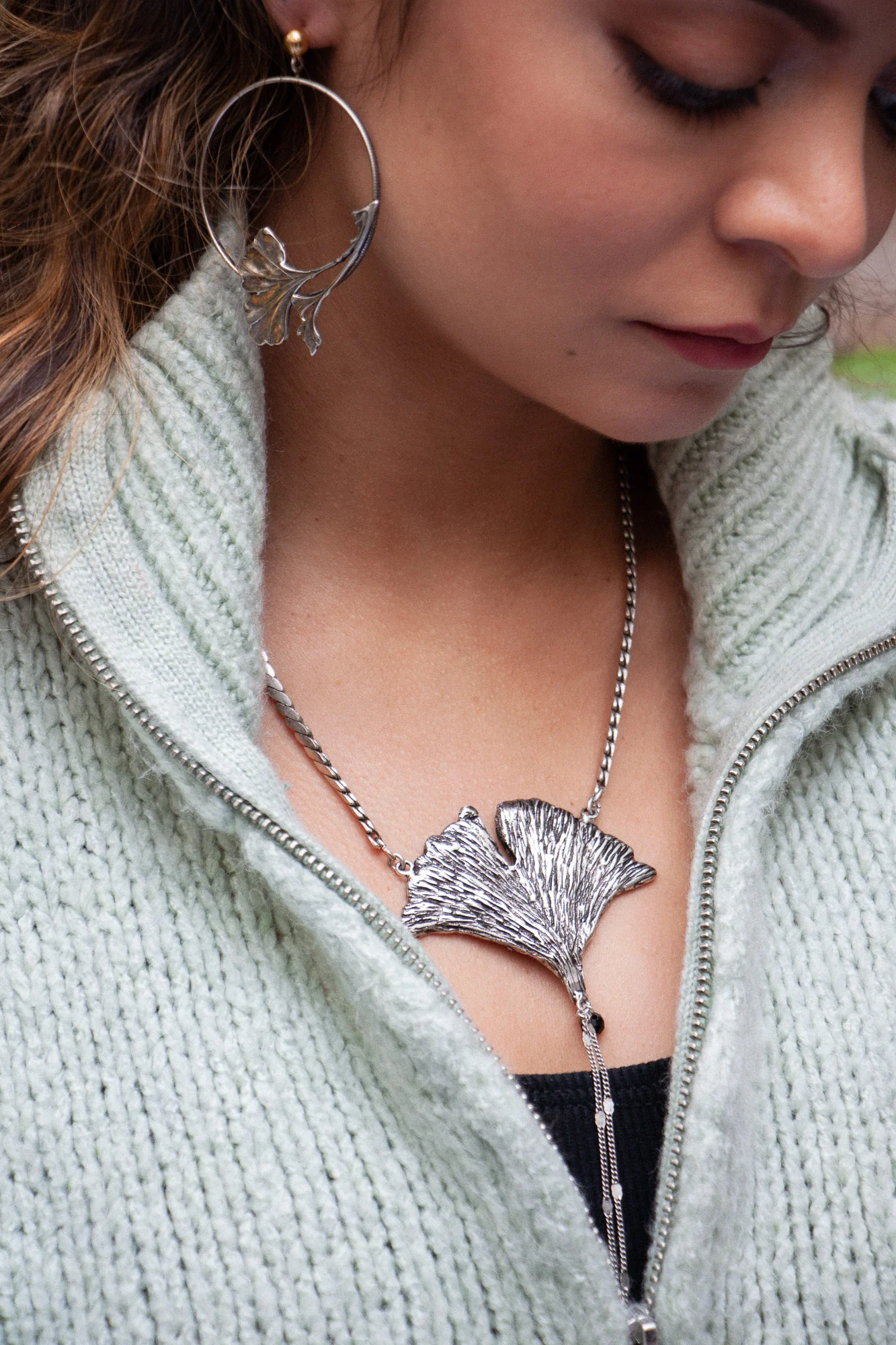 Boucles d’Oreilles Petite Feuille de Ginkgo Posées sur une créole ces feuilles de ginkgo dansent avec le vent. Elles murmurent la promesse du renouveau. – Boucles d’oreilles en laiton argentées, patinées – Sans Nickel – Livré avec une pochette tissée main