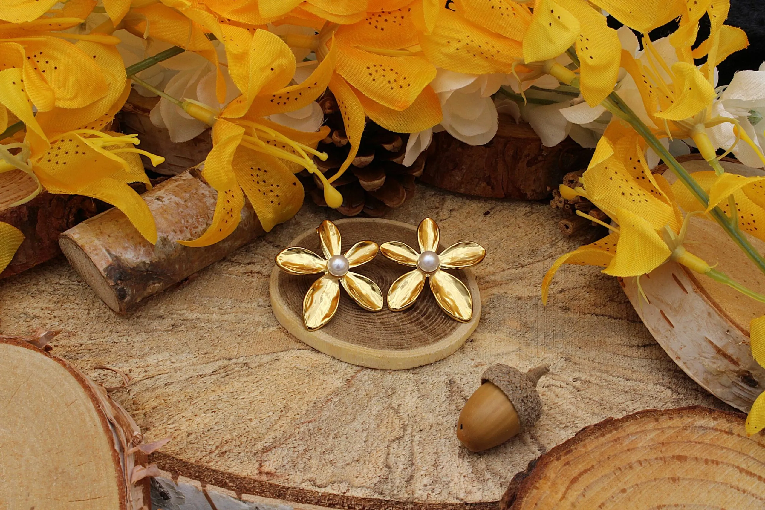 Bijoux Clous d’Oreilles Fleur-Evasée-Perle