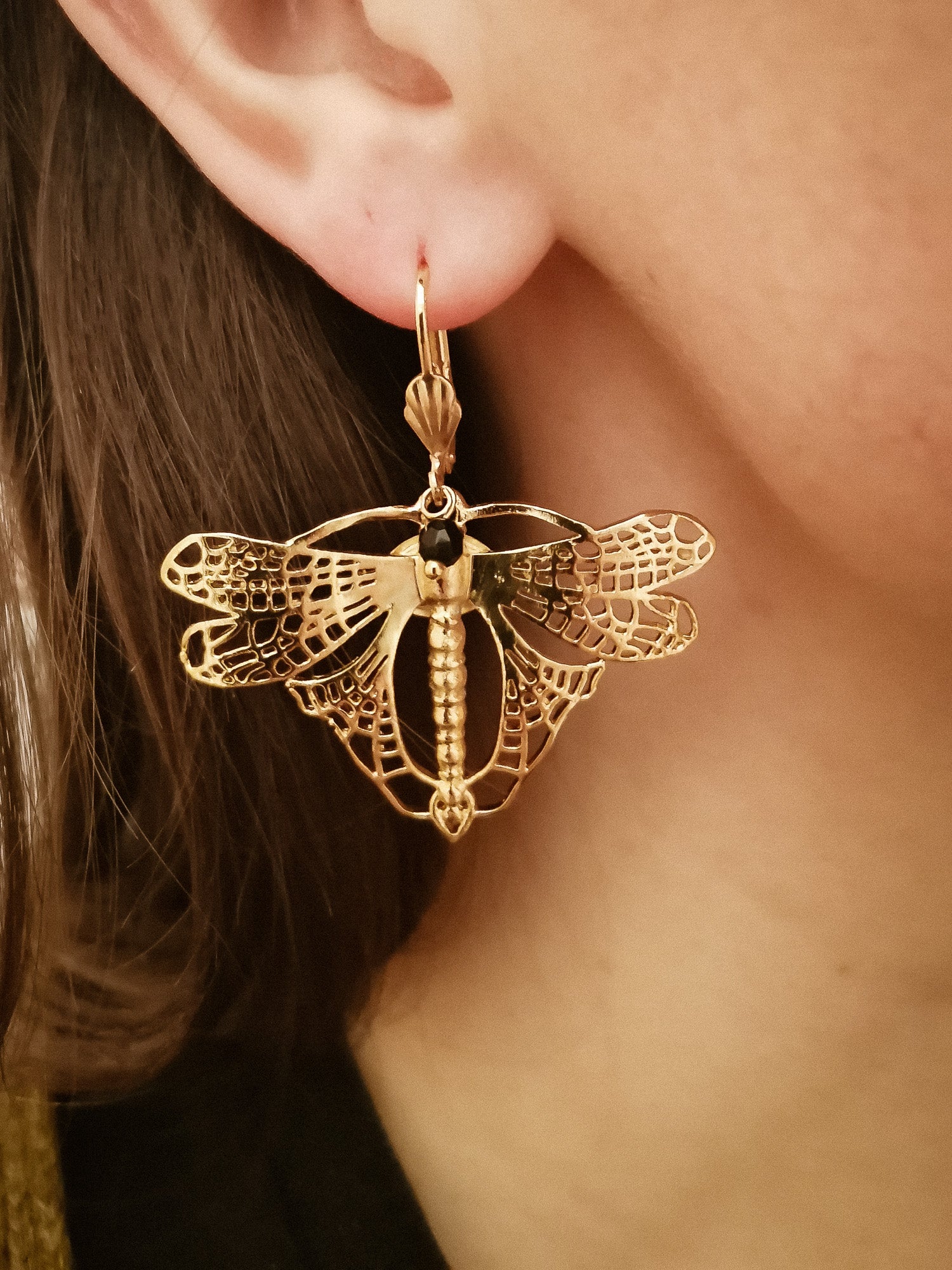 Boucles d’Oreilles Libellule Volant Dorées