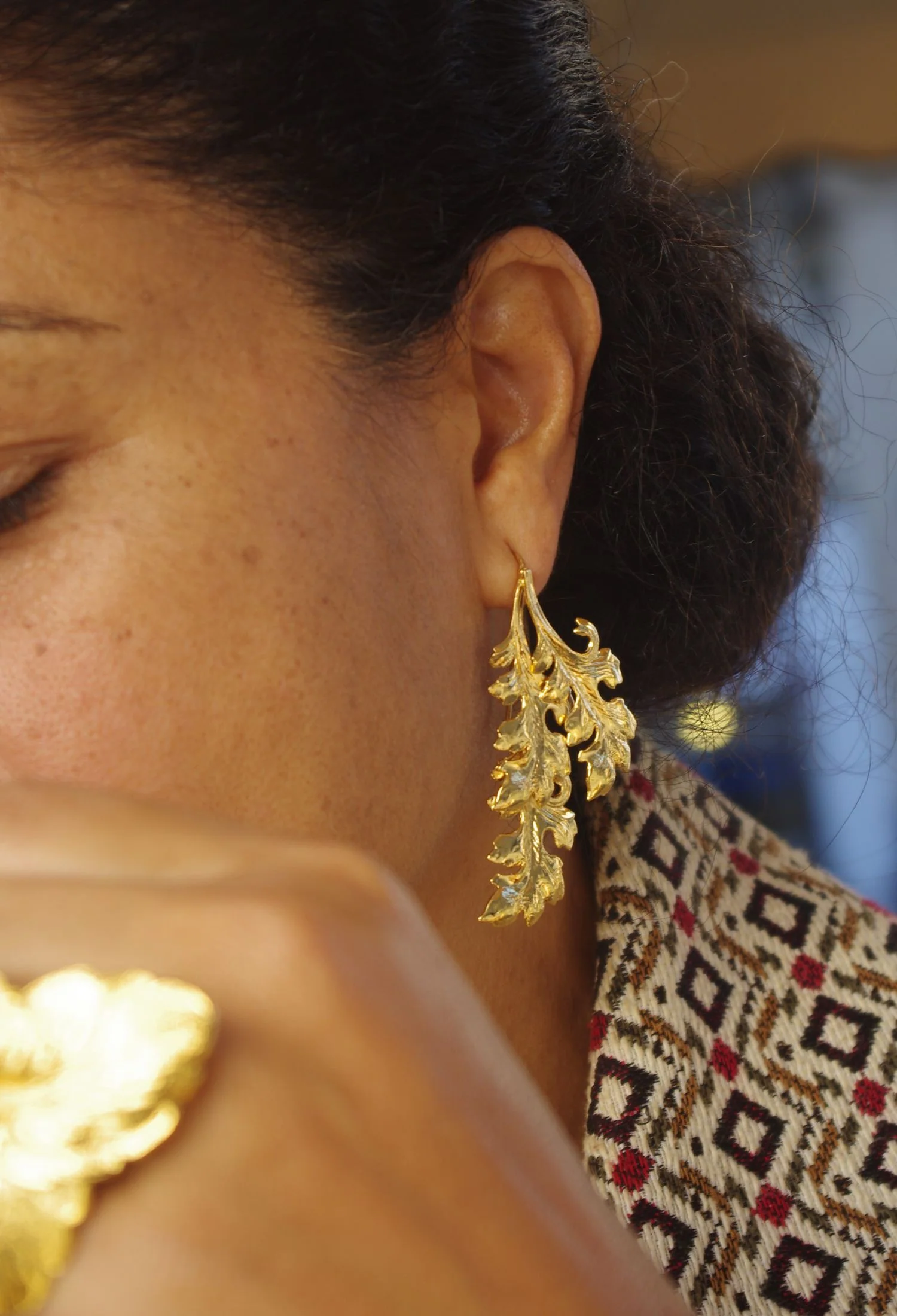 Découvrez ces magnifiques boucles d’oreilles dorées or fin délicatement sculptées en forme de feuille. Confectionnées avec une attention méticuleuse au détail et un savoir-faire artisanal, elles vous offriront un style sophistiqué et élégant. Un ajout idéal pour parfaire n’importe quelle tenue.