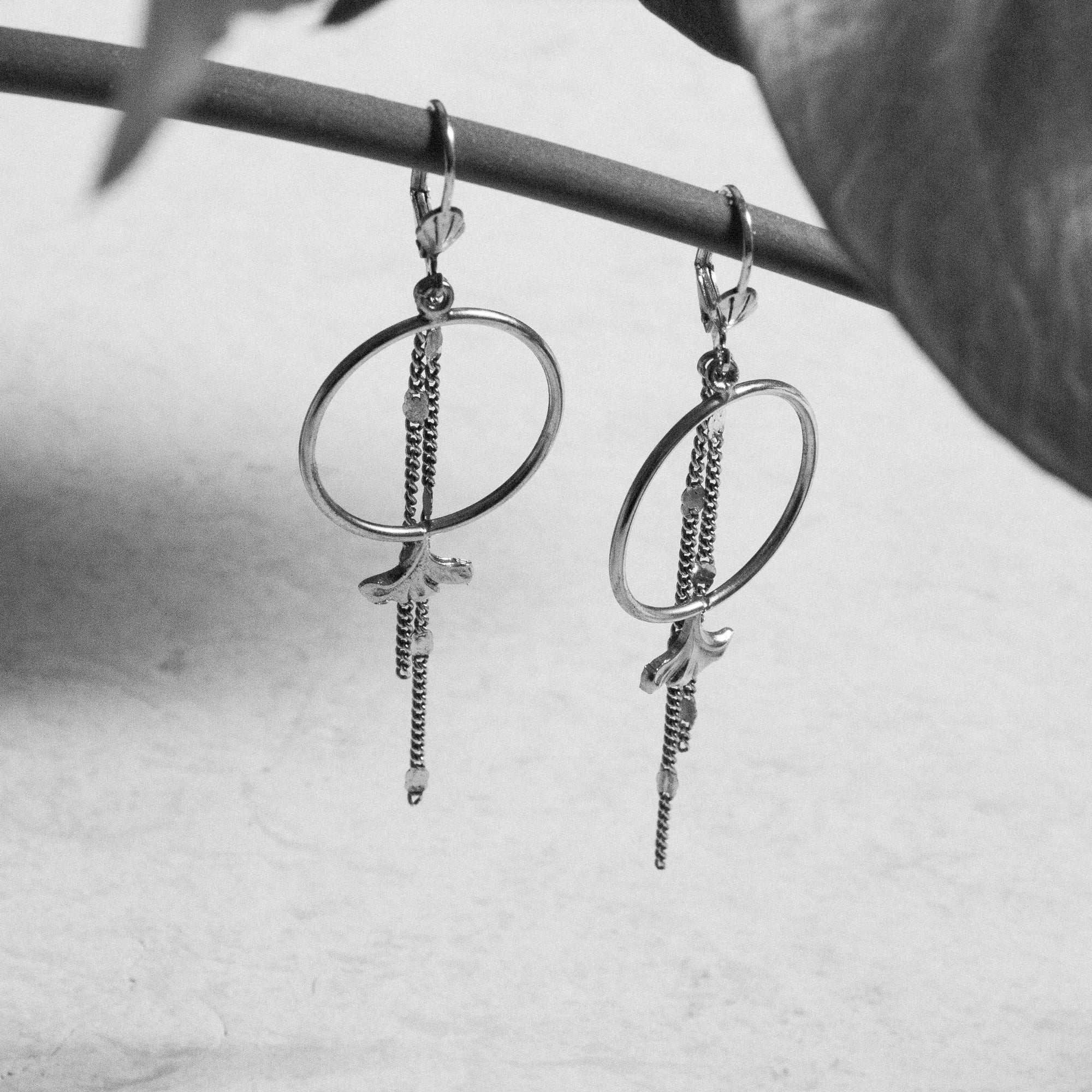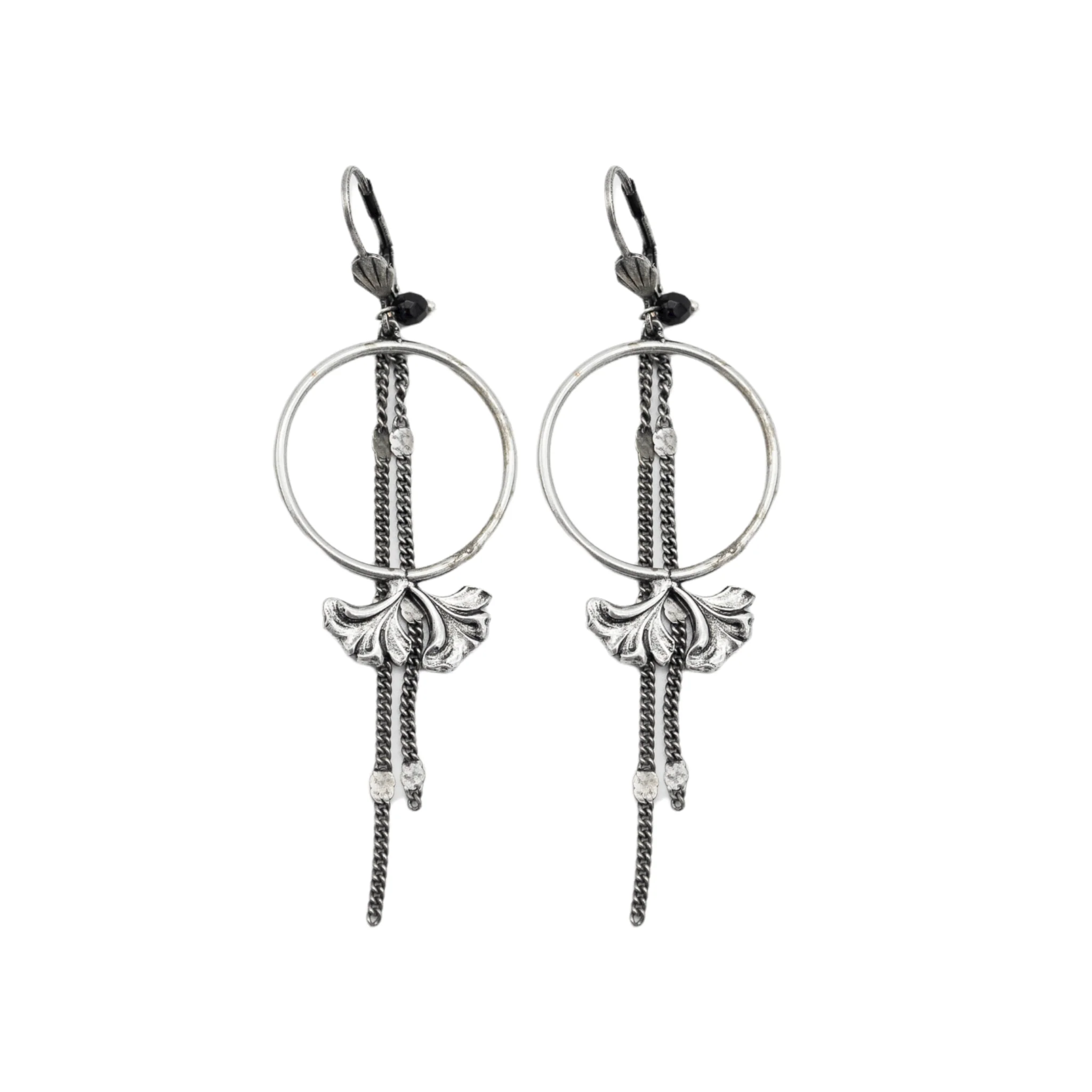 – Boucles d’oreilles argentées, patinées – Inoxydable – Sans Nickel – Livré avec une pochette tissée main