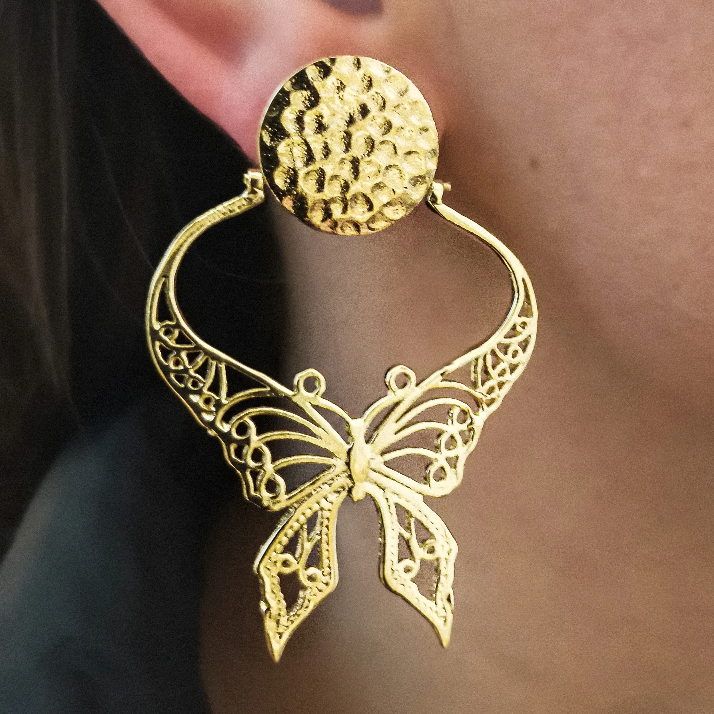 Découvrir notre nouvelle collection des boucles d’oreilles aux puces avec Papillon charme en filigrane doré. – Boucles d’oreilles en laiton dorées or fin – Sans Nickel – Livré avec une pochette tissée main