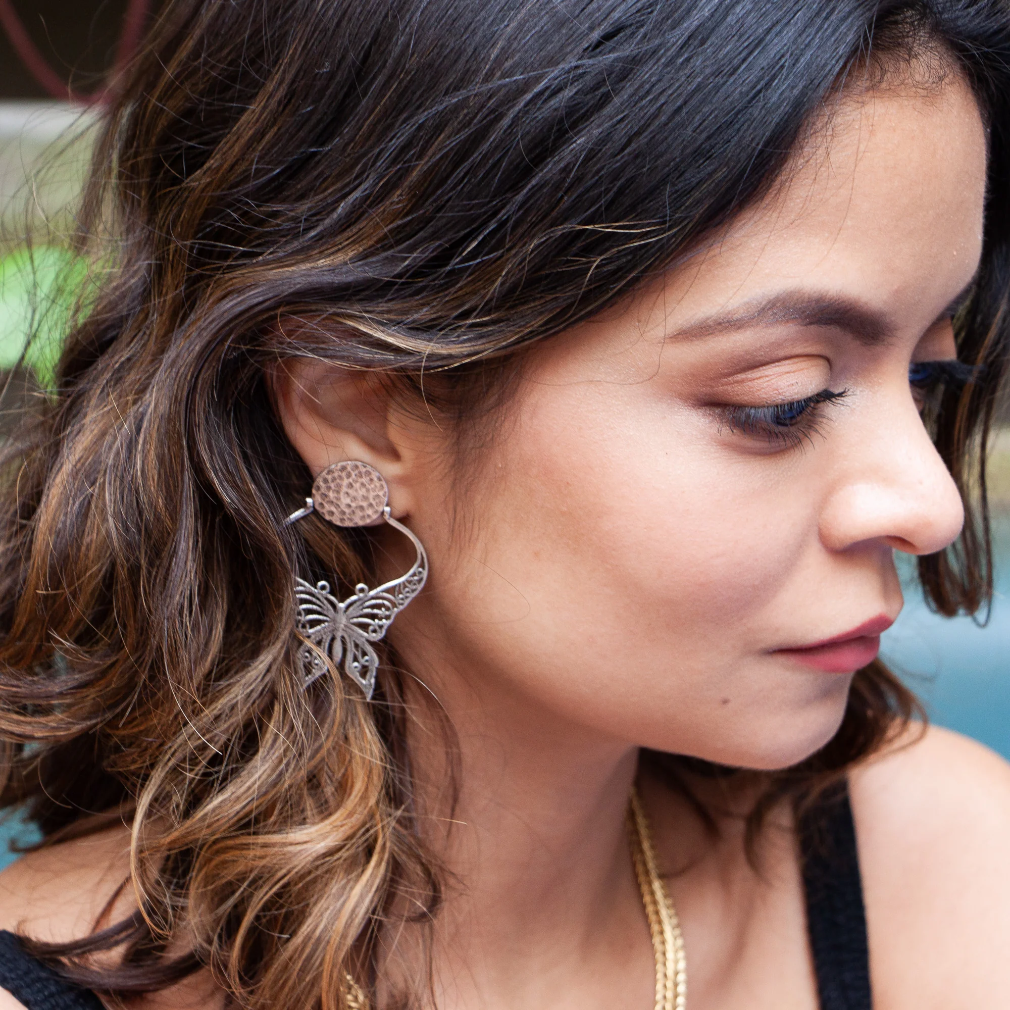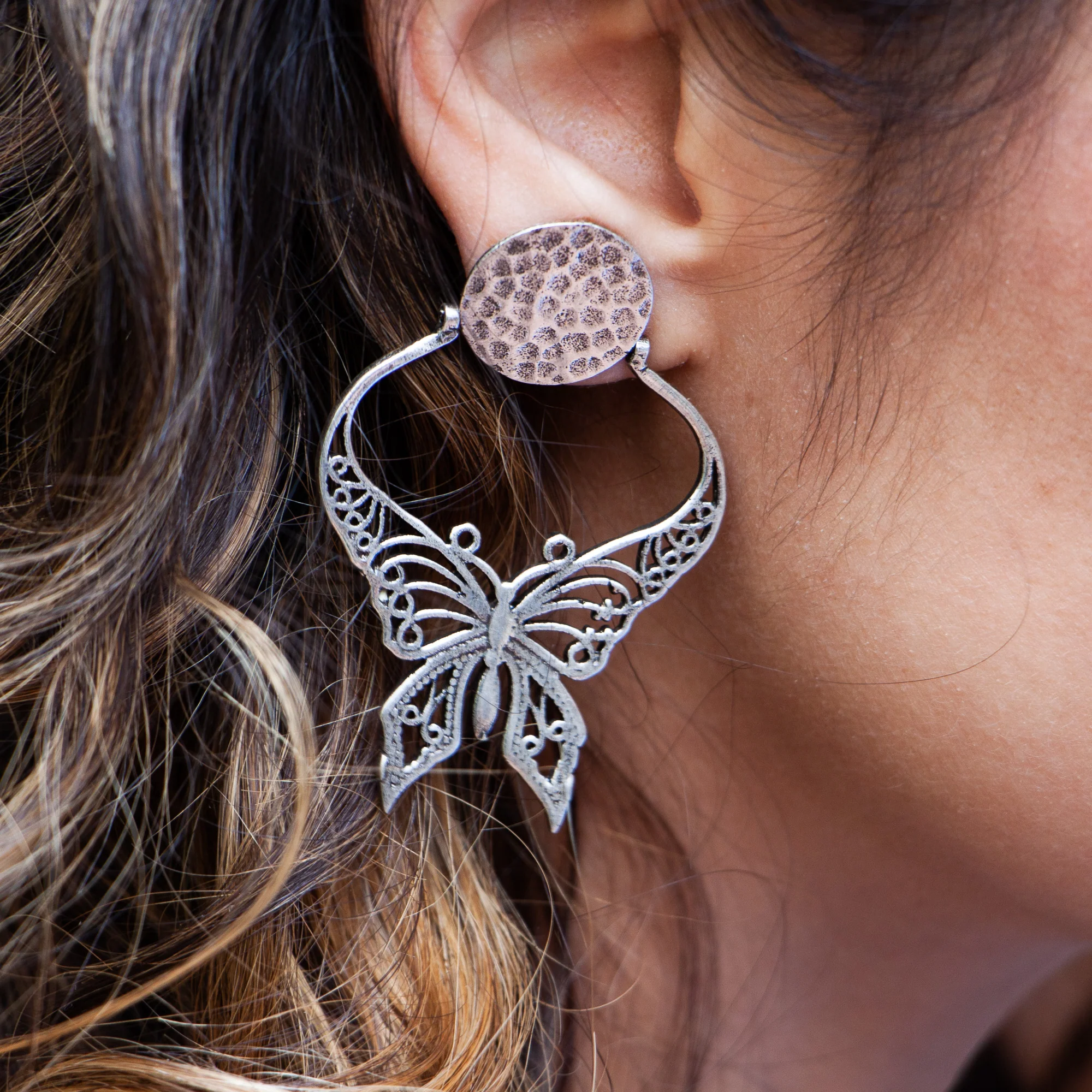 Découvrir notre nouvelle collection des boucles d’oreilles aux puces avec Papillon charme en filigrane argenté.