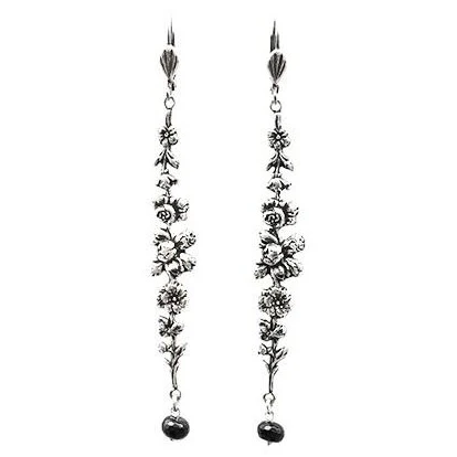 Boucles d’Oreilles Rosier – Boucles d’oreilles argentées, patinées – Pierre : Onyx – Sans Nickel – Livré avec une pochette tissée principale