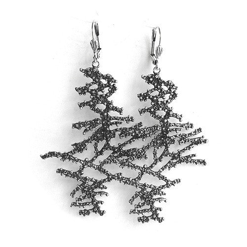 Boucles d’Oreilles Seaweed – Boucles d’oreilles argentées , patinées – Inoxydable – Sans Nickel – Livré avec une pochette tissée main