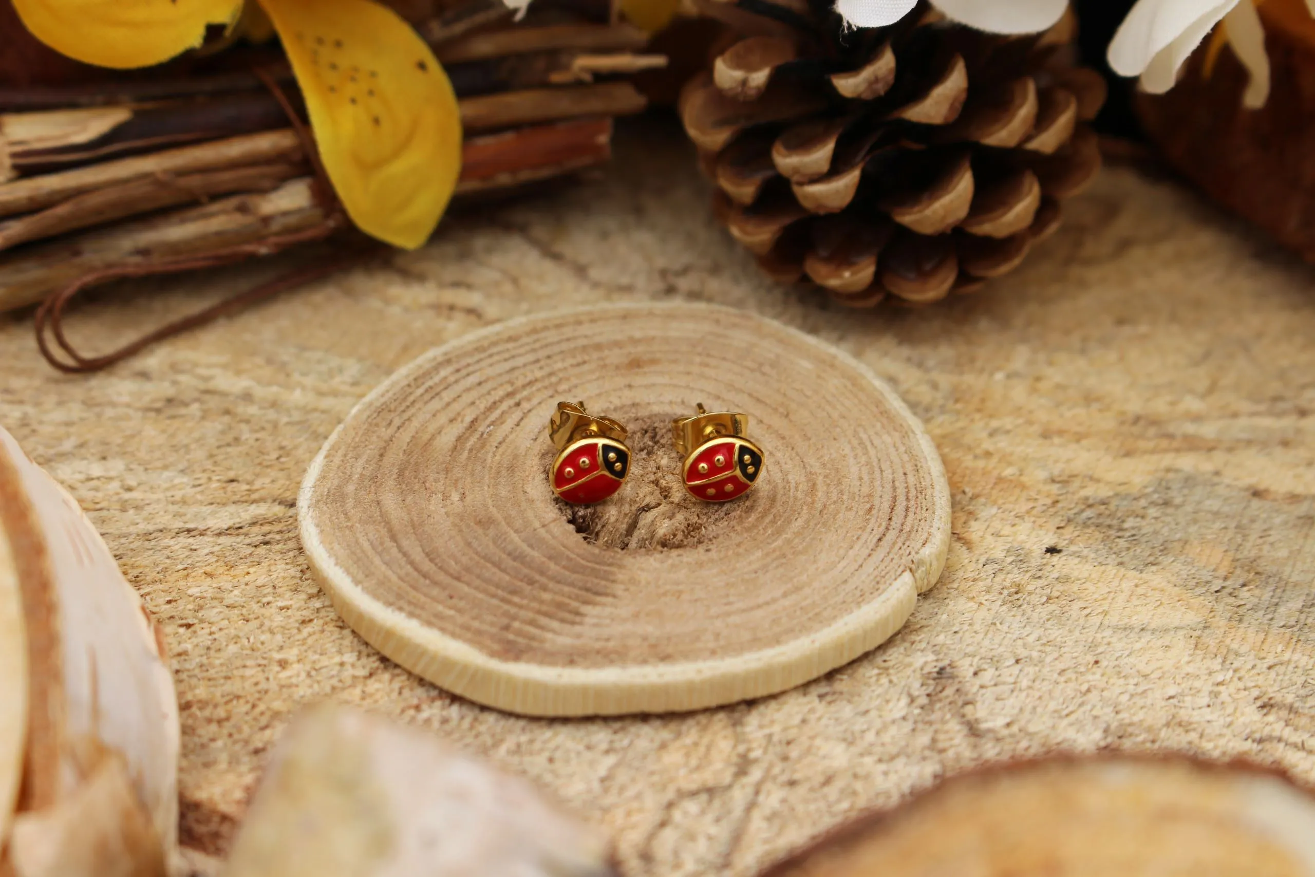 Bijoux Clous d’Oreilles Coccinelle en acier inoxydable 316.
