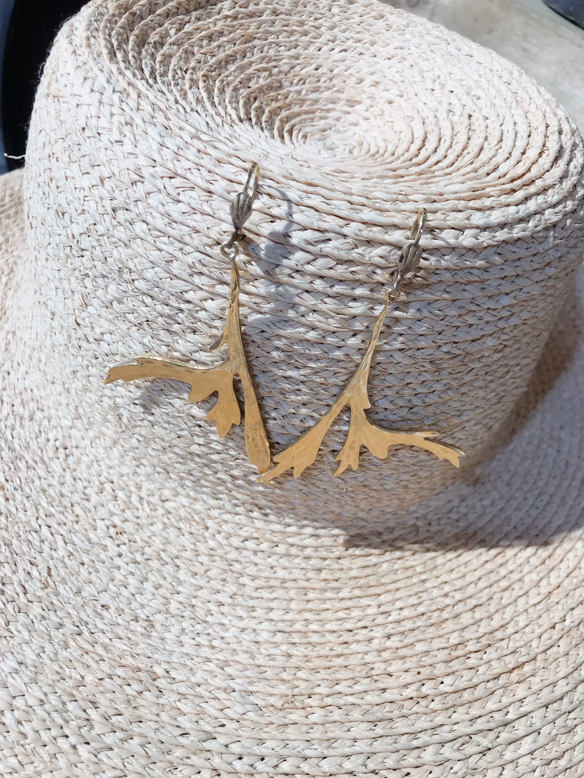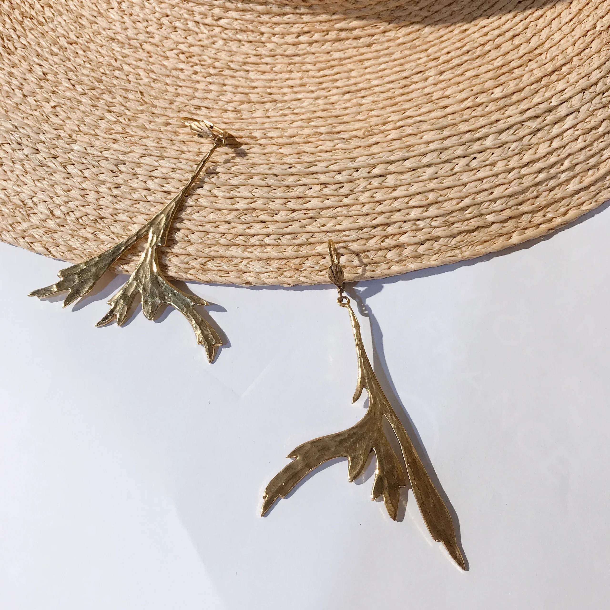 BOUCLES D’OREILLES VEGETALE DOREE – Boucles d’oreilles dorées or fin, patinées – Inoxydable – Sans Nickel – Livré avec une pochette tissée main
