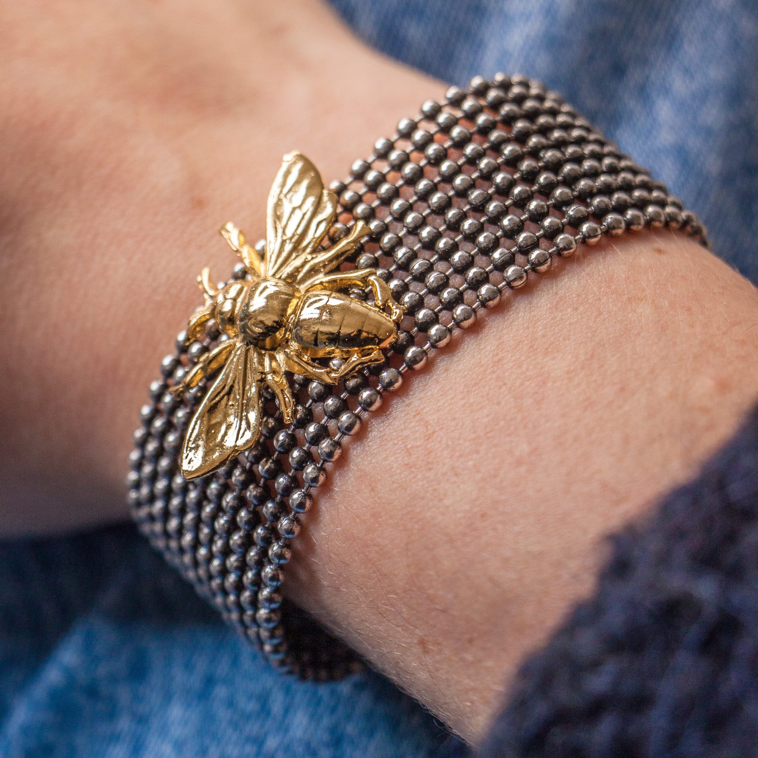 Bracelet Adele en chaîne maille argentée et un petit insecte doré