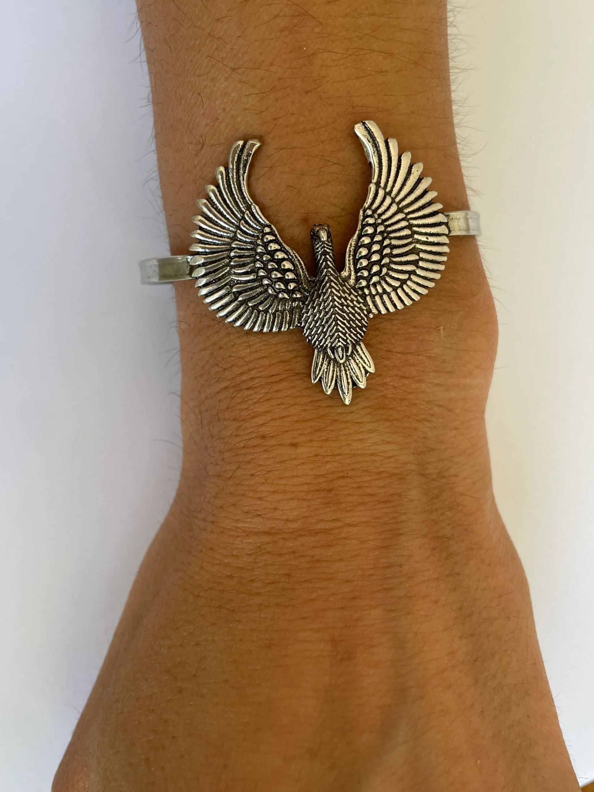 Ce bijou en forme d’aigle, symbole de la force est argenté (trempé dans un bain d’argent 925). réglable, il sera s’ajuster parfaitement à votre poignet
